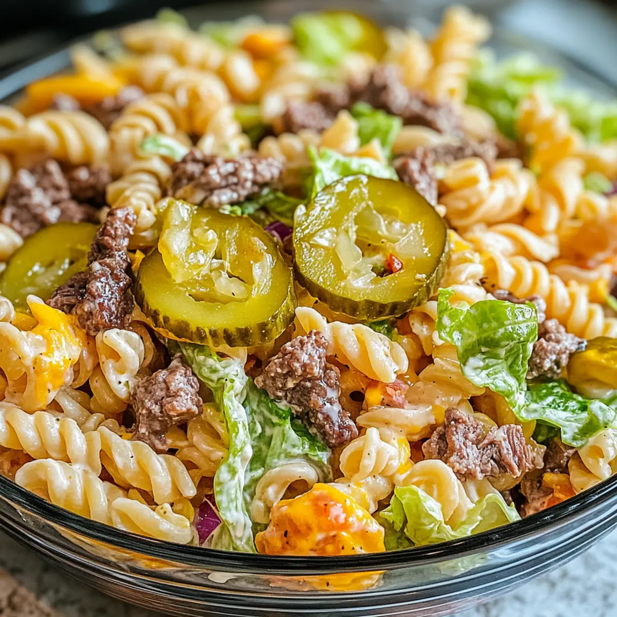 - Dressing anpassen: Passe die Dressingszutaten nach deinem Geschmack an; mehr Senf für eine würzigere Note oder weniger Mayo für eine leichtere Variante des Big Mac Nudelsalats.
