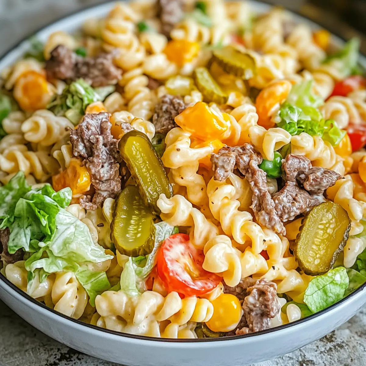 Mit diesen Zutaten ist dein neu erfundenes Big Mac Nudelsalat nicht nur einfach zuzubereiten, sondern auch ein echter Publikumsmagnet!