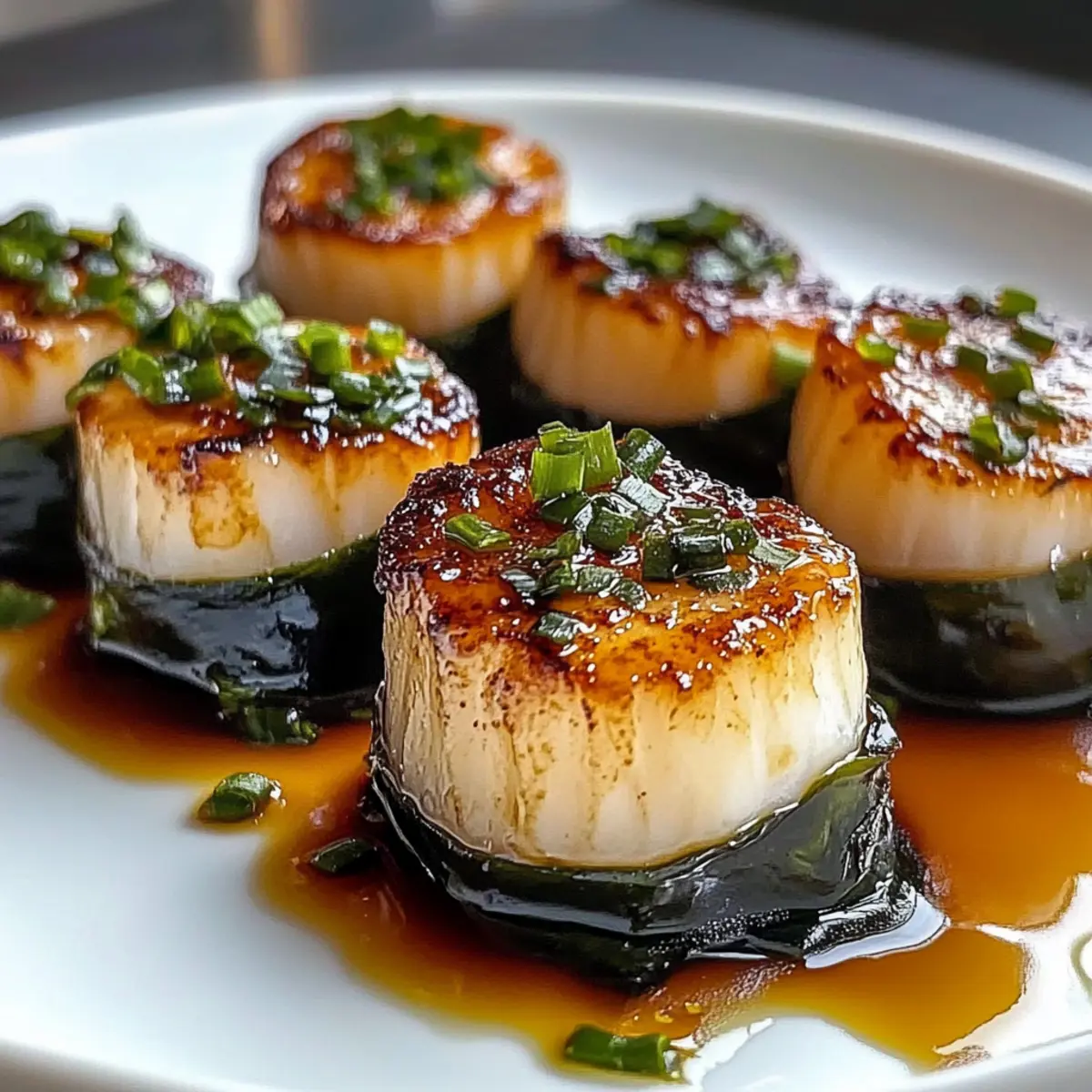 Seetang umwickelte Jakobsmuscheln Ponzu genießen