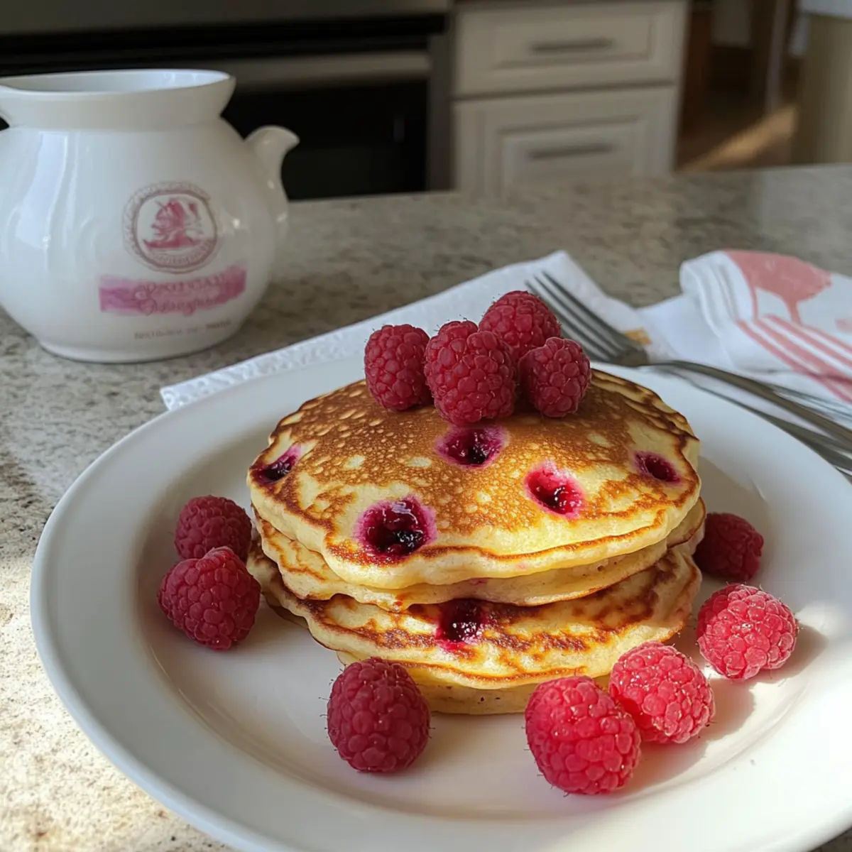 Frische Himbeerpfannkuchen für das perfekte Frühstück