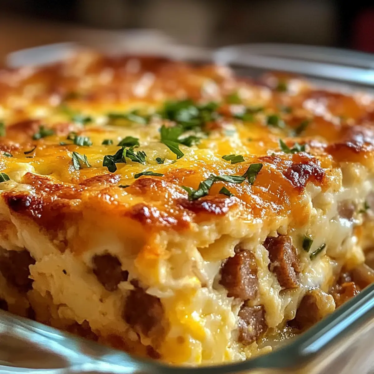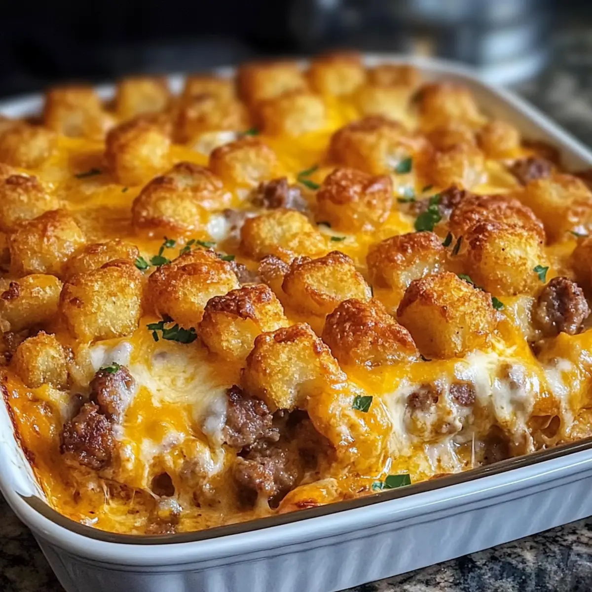 Tater Tot Wurst Frühstück Auflauf für die ganze Familie