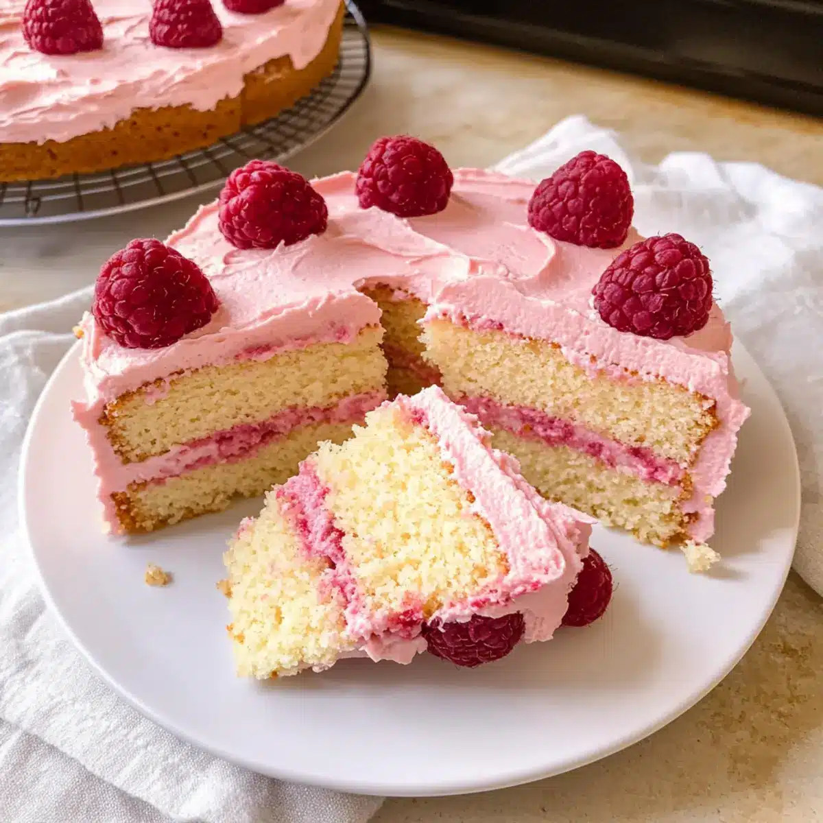 Mandel Himbeerkuchen mit fluffiger Buttercreme
