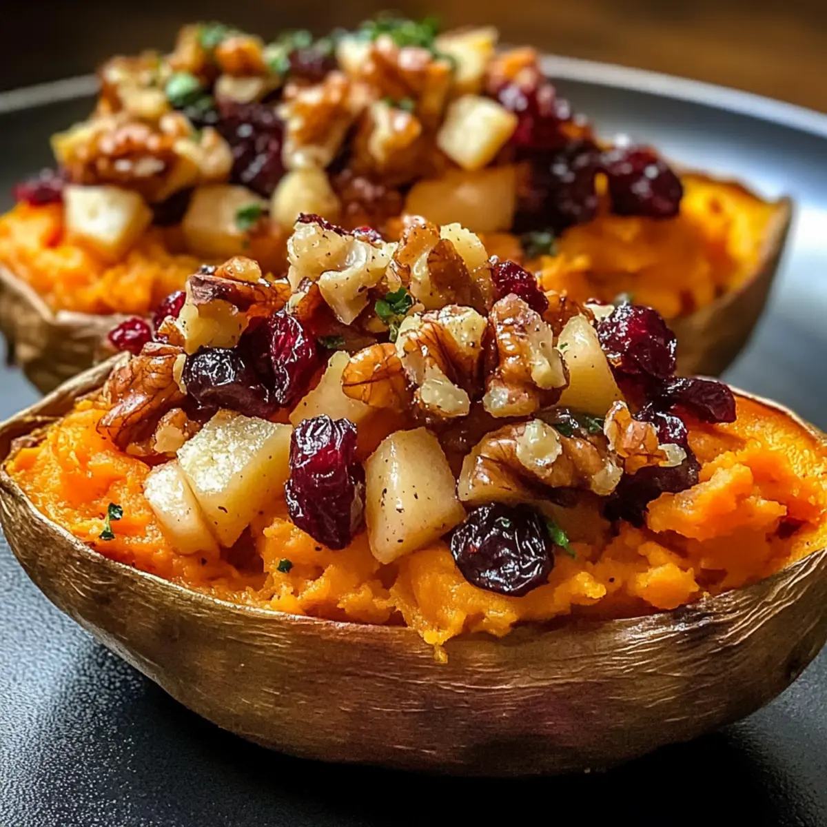 Cranberry-Apfel zweimal gebackene Süßkartoffeln Rezept
