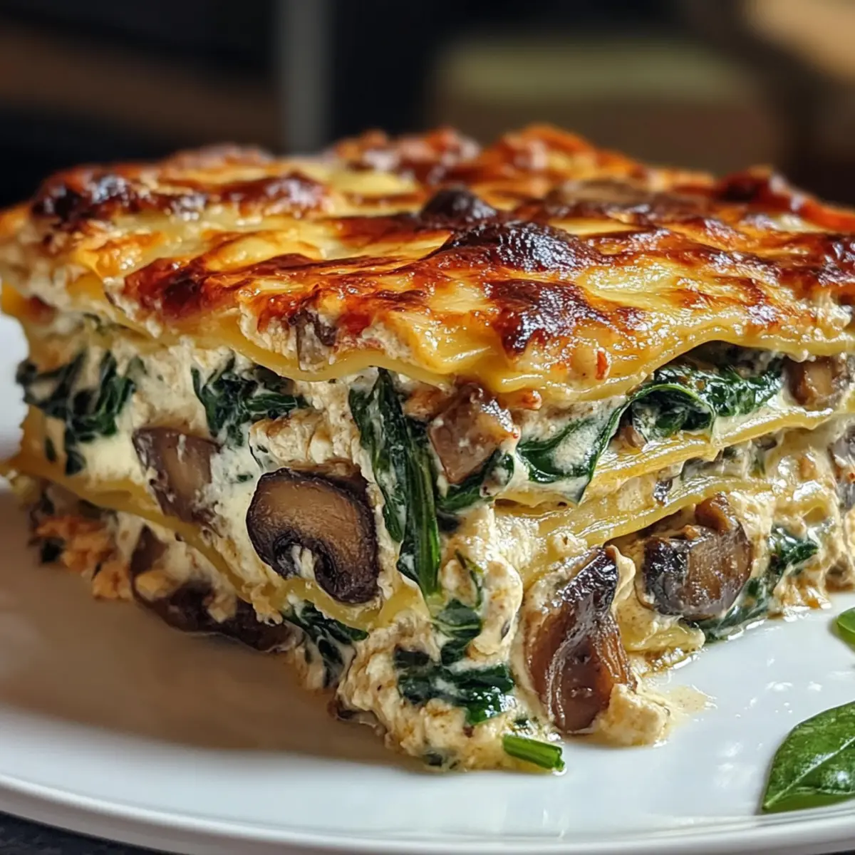 Hüttenkäse-Lasagne-Auflauf mit Pilzen und Spinat