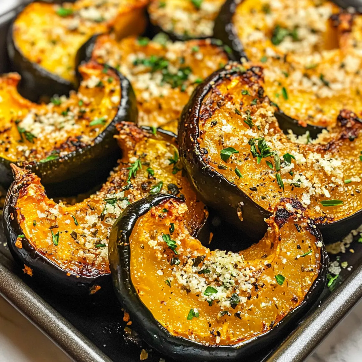 Parmesan Kräuter gerösteter Eichelkürbis für jeden Anlass