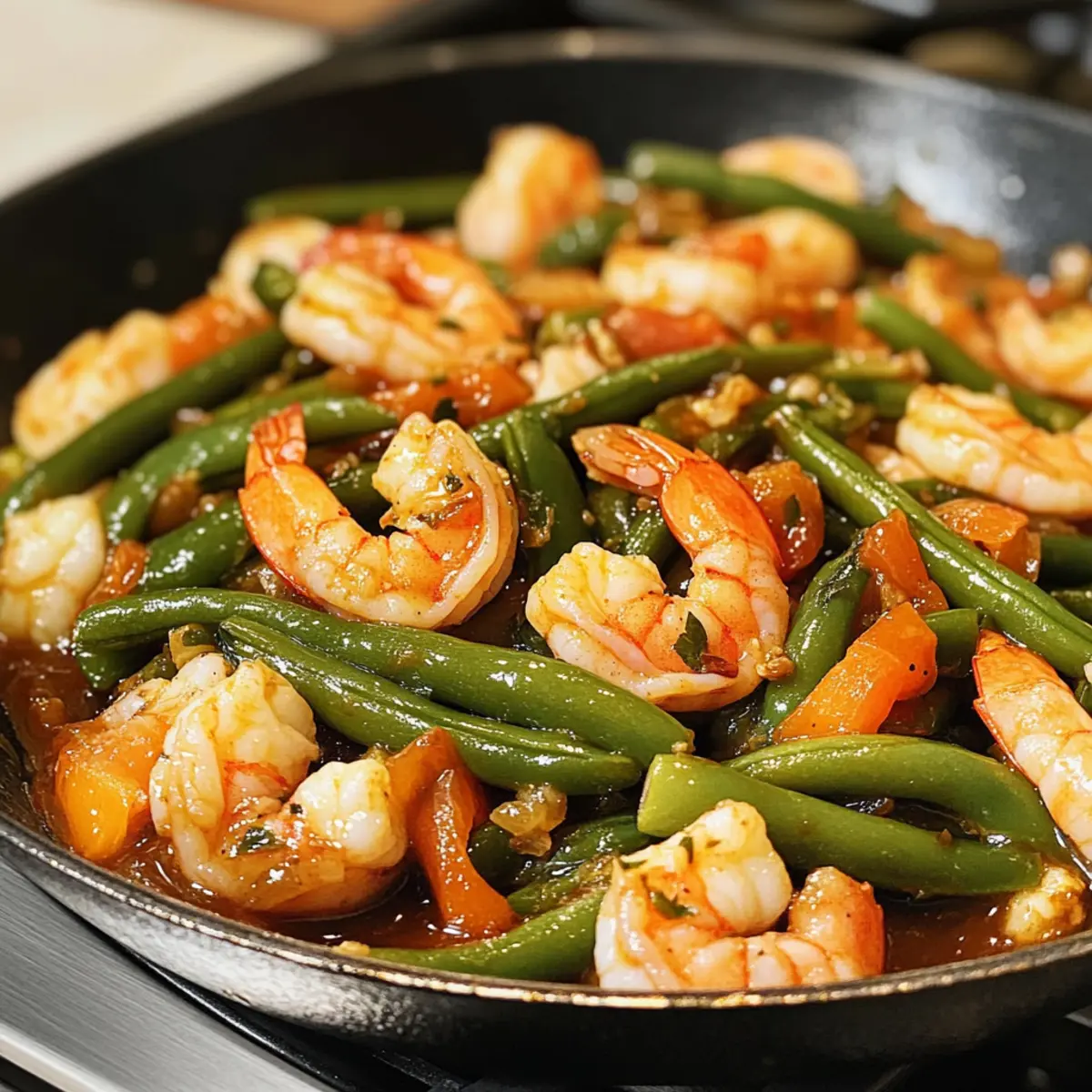 Lange Bohnen und Garnelen Pfanne für Genießer