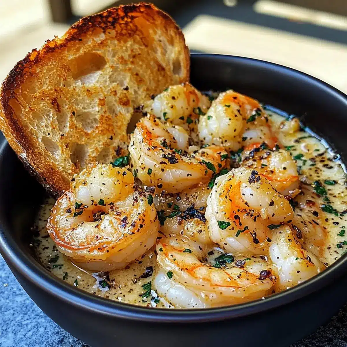 Garnelen Scampi Schalen mit Knoblauchbrot genießen