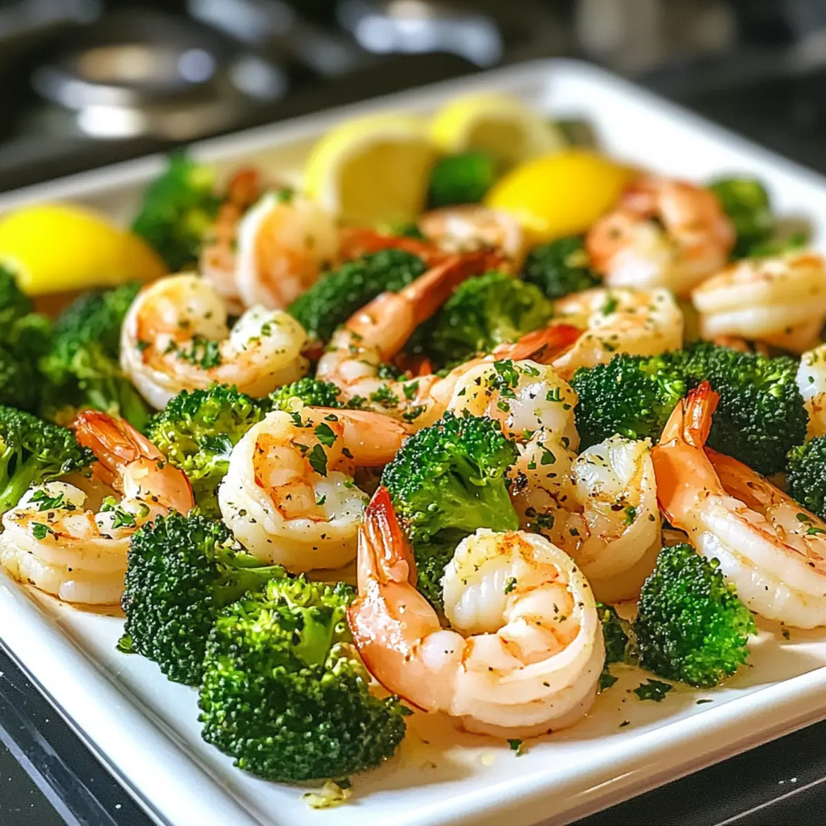 Blech-Pfanne Zitronen Knoblauch Garnelen mit Brokkoli
