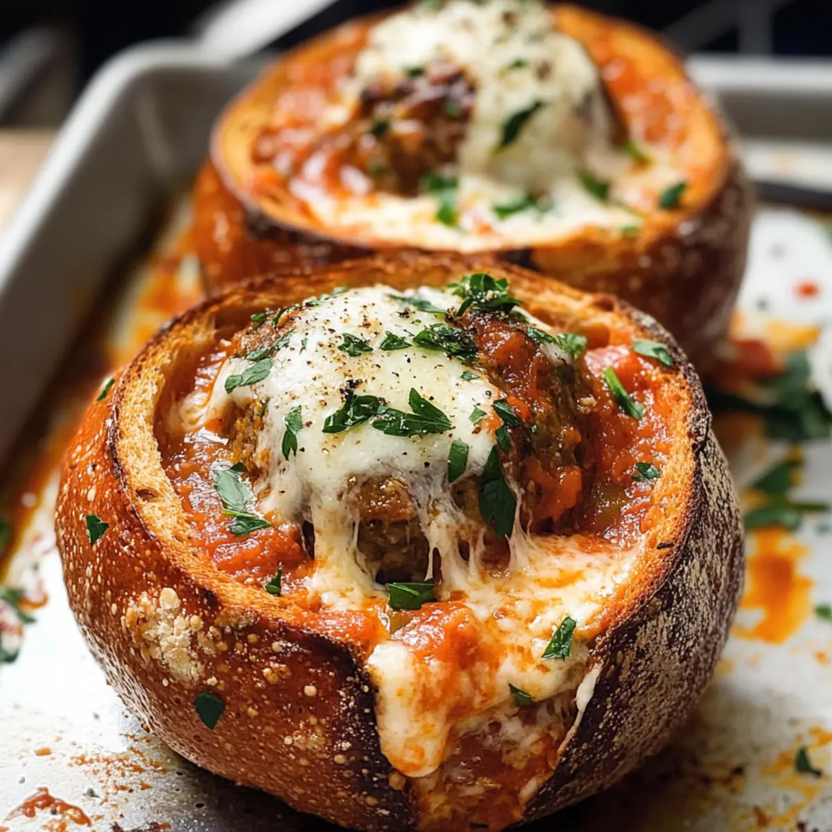 Parmesan Fleischbällchen Suppe im Brot-Bowl