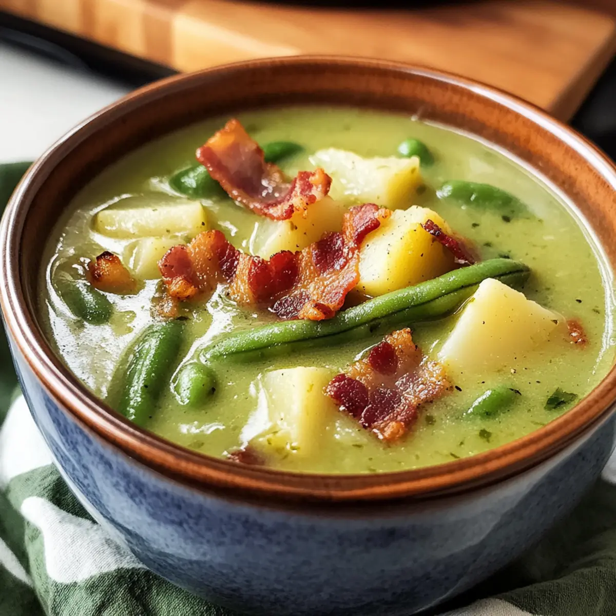Grüne-Bohnen-Suppe mit knusprigem Bacon