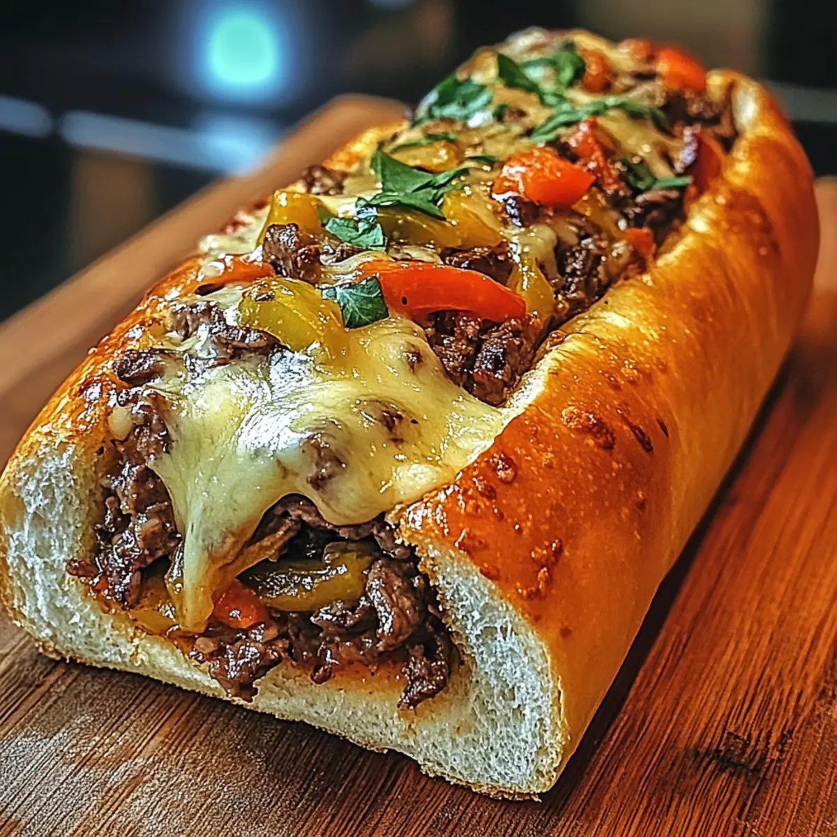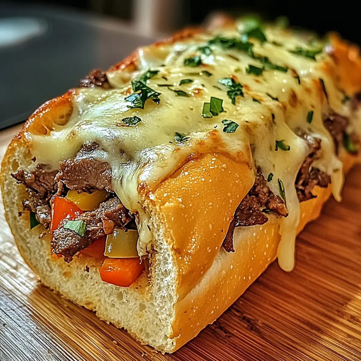 Cheesesteak-gefülltes Knoblauchbrot für Genussmomente