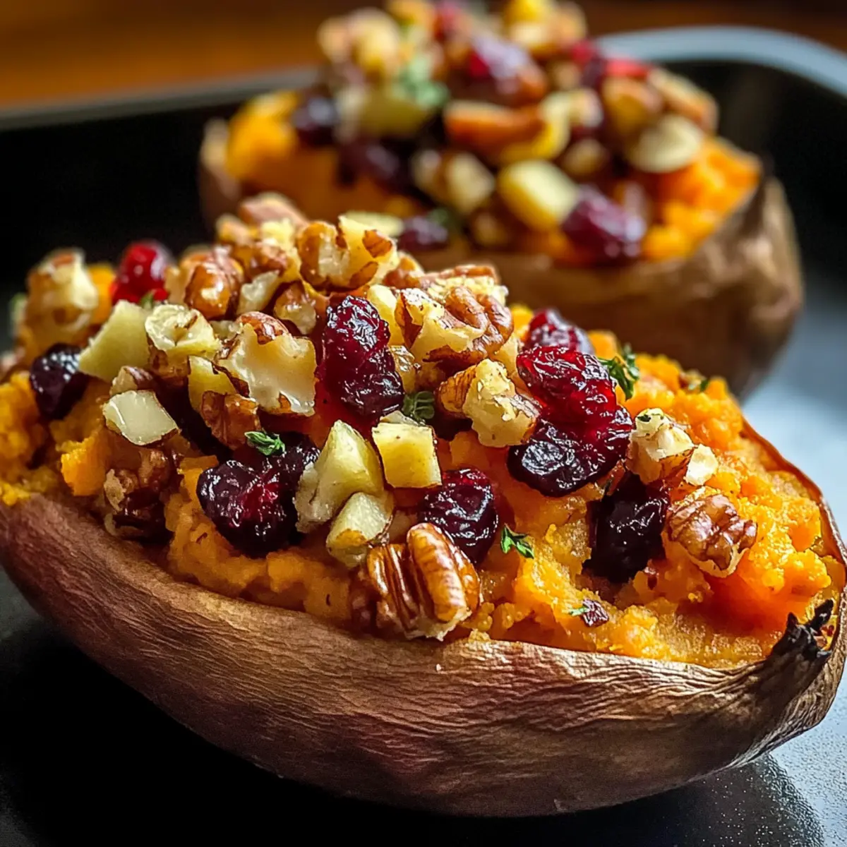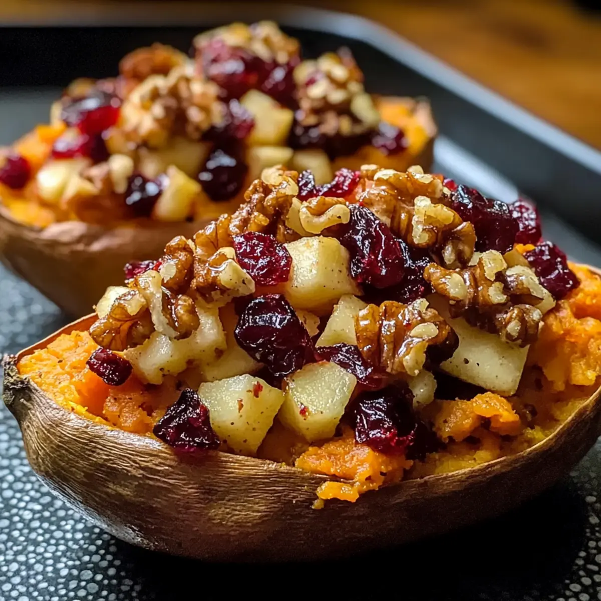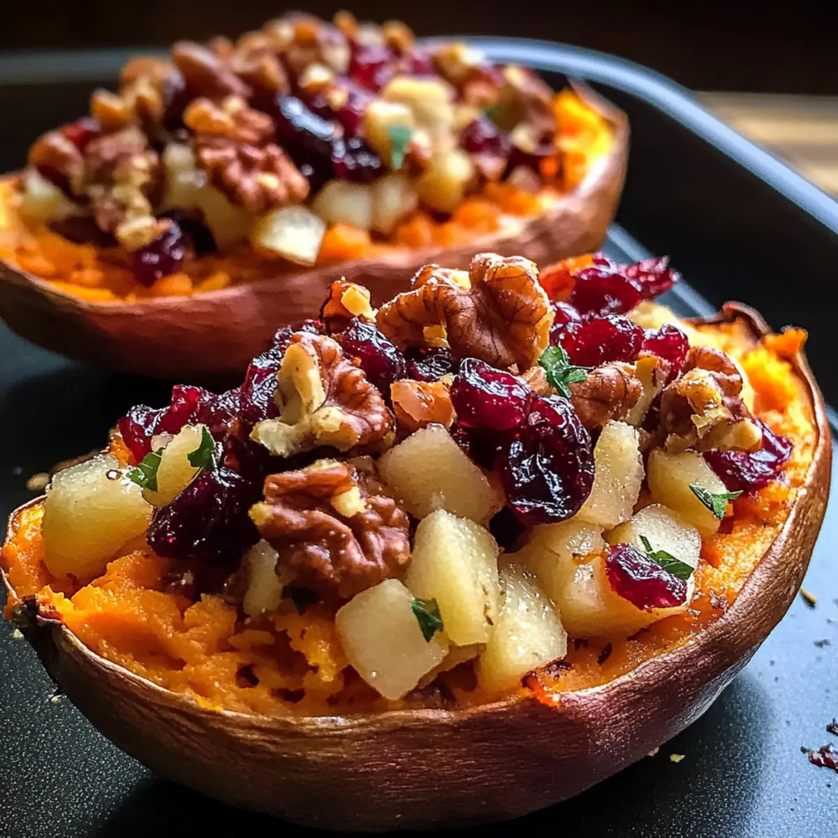 Cranberry-Apfel zweimal gebackene Süßkartoffeln Rezept