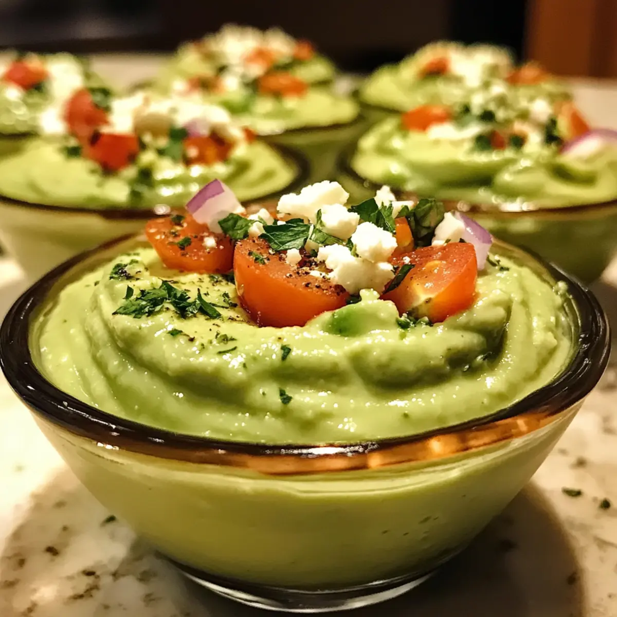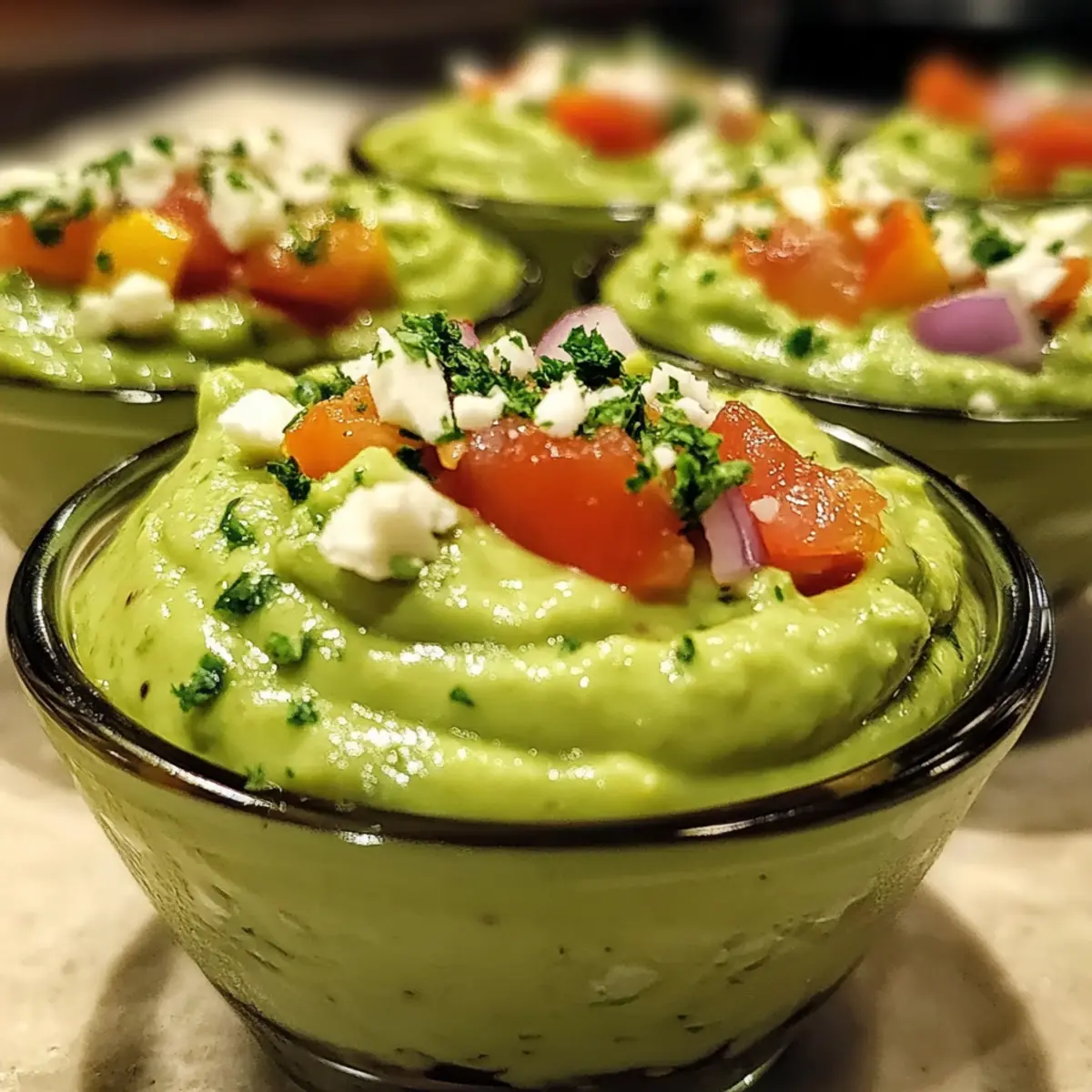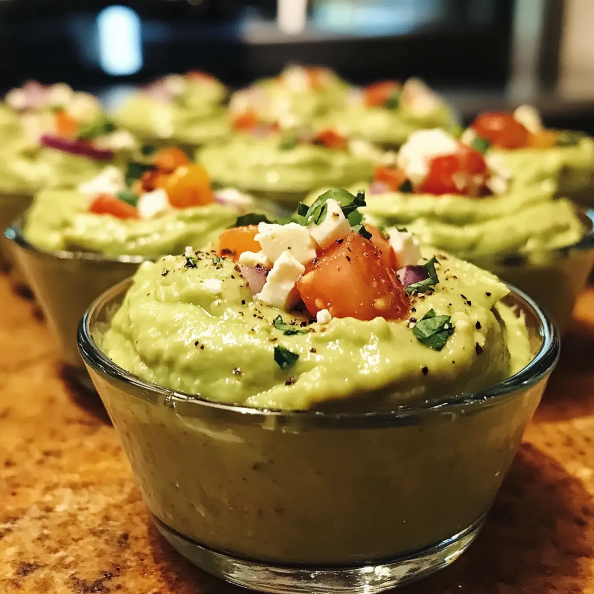 Variation der Toppings: Experimentieren Sie mit verschiedenen Toppings wie gegrilltem Gemüse oder verschiedenen Käsesorten, um Ihre cremigen Avocado-Dip-Tassen interessant zu halten.