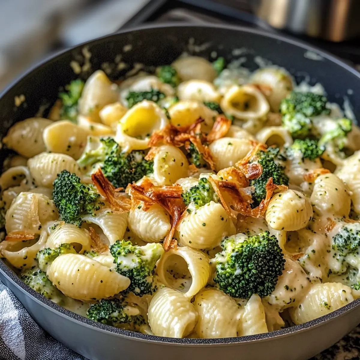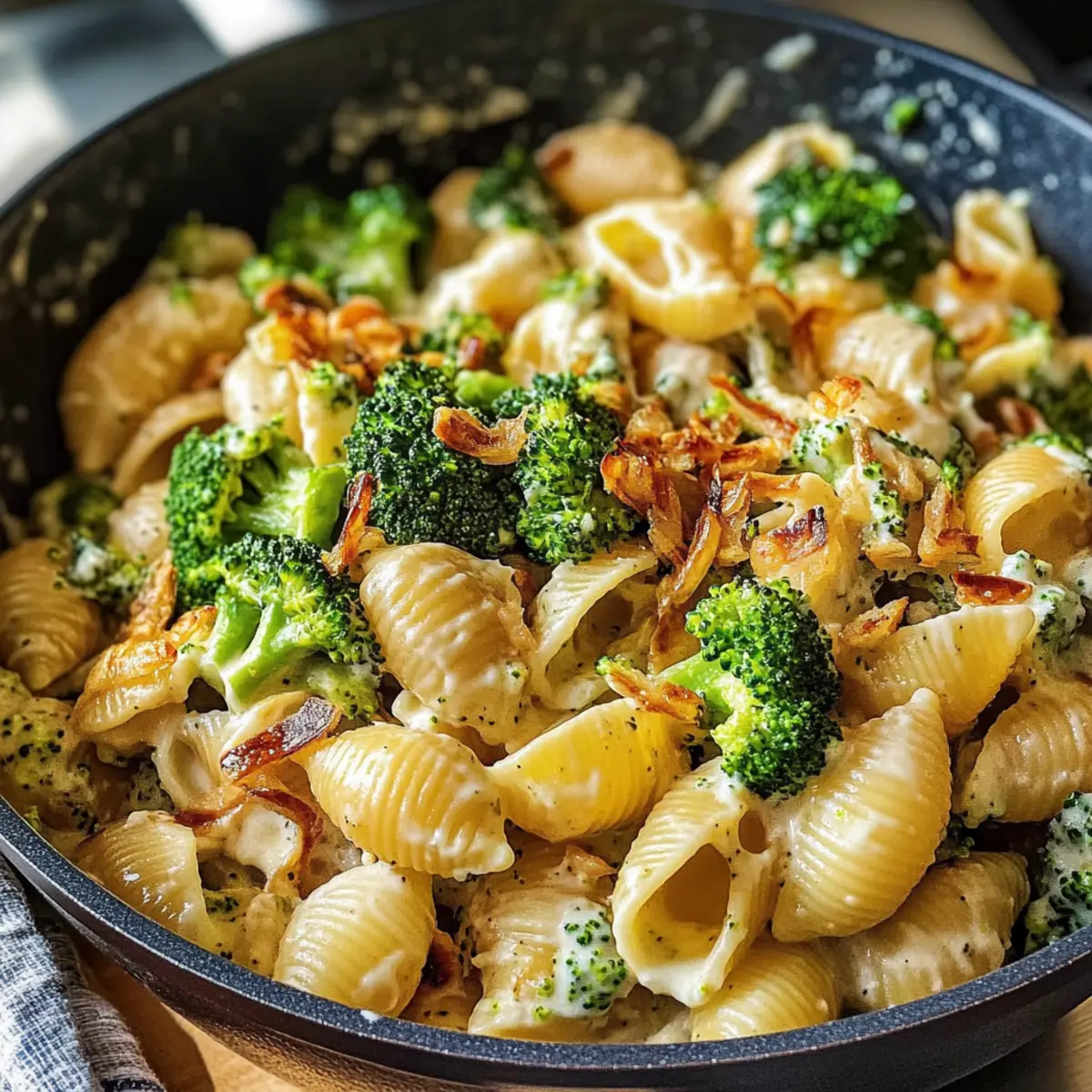 Einfachheit, die begeistert: Die Zubereitung dieser cremigen veganen Brokkoli & Muscheln ist kinderleicht und benötigt nur grundlegende Kochfähigkeiten.