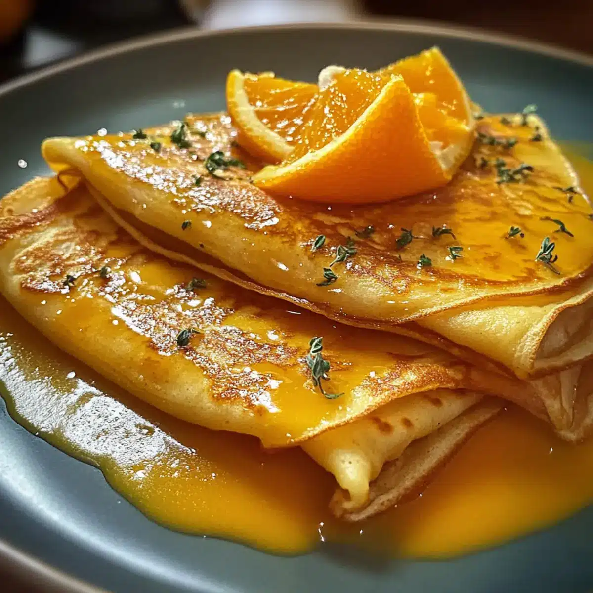 Einzigartiger Genuss: Crêpes Suzette vereinen die feinen Aromen von frischen Orangen mit dem luxuriösen Geschmack von Grand Marnier, was jede Gabel zu einem Fest macht.