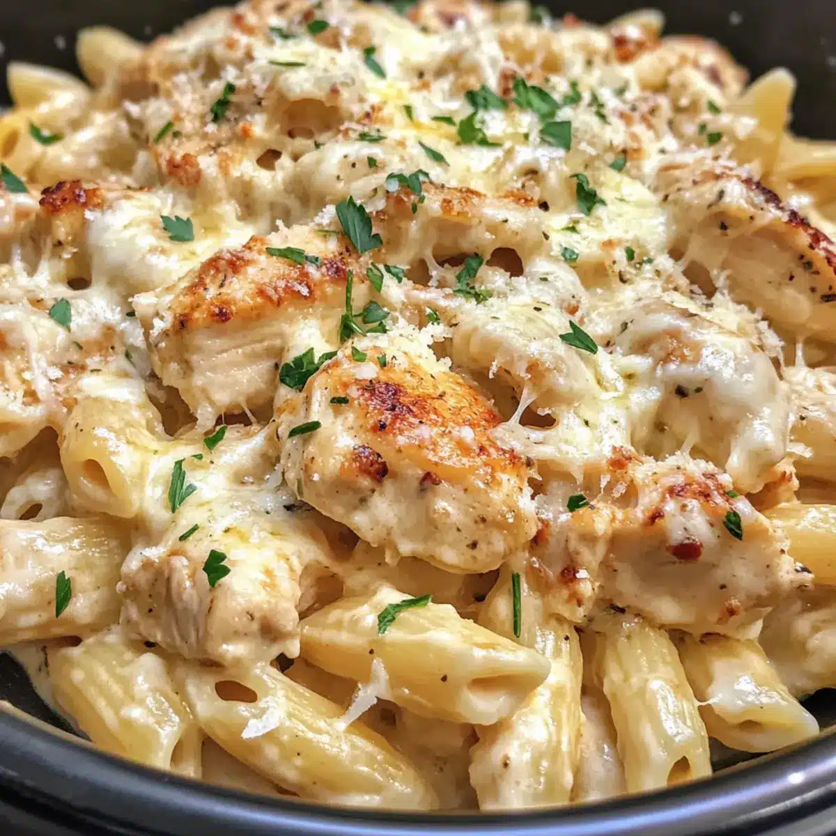 Mit diesen Zutaten zauberst du ein unvergessliches Crockpot Knoblauch Parmesan Hühnchen Pasta Erlebnis!
