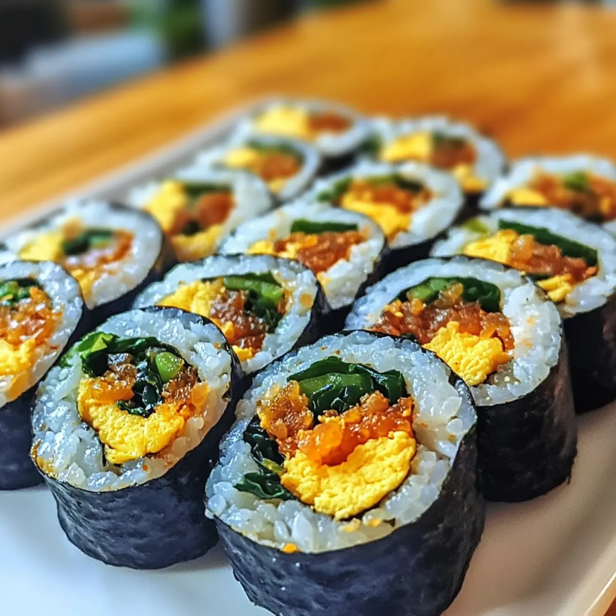 - Kräutervariationen: Scheibe frische Kräuter wie Koriander oder Basilikum ein, um dem Kimbap eine erfrischende Note zu verleihen.