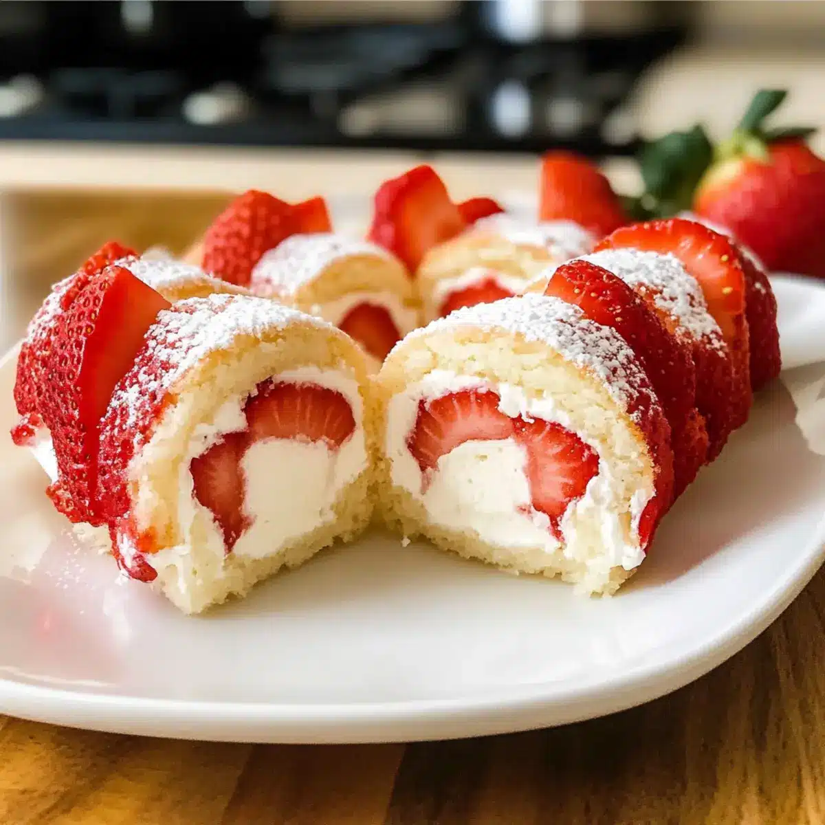 Erdbeerkuchen Käsekuchen Sushi Rollen für Naschkatzen
