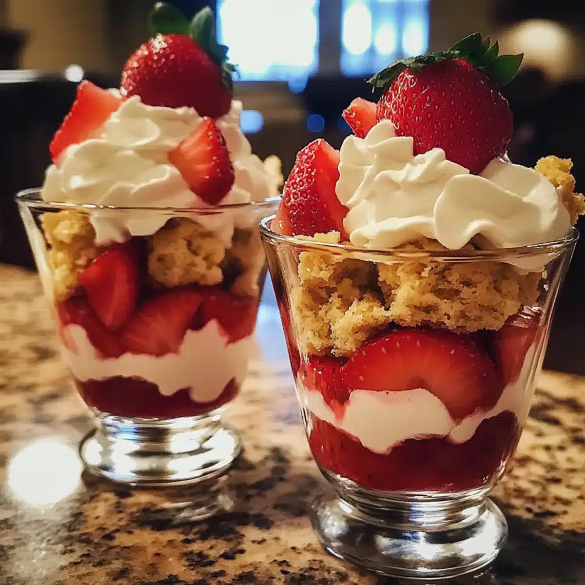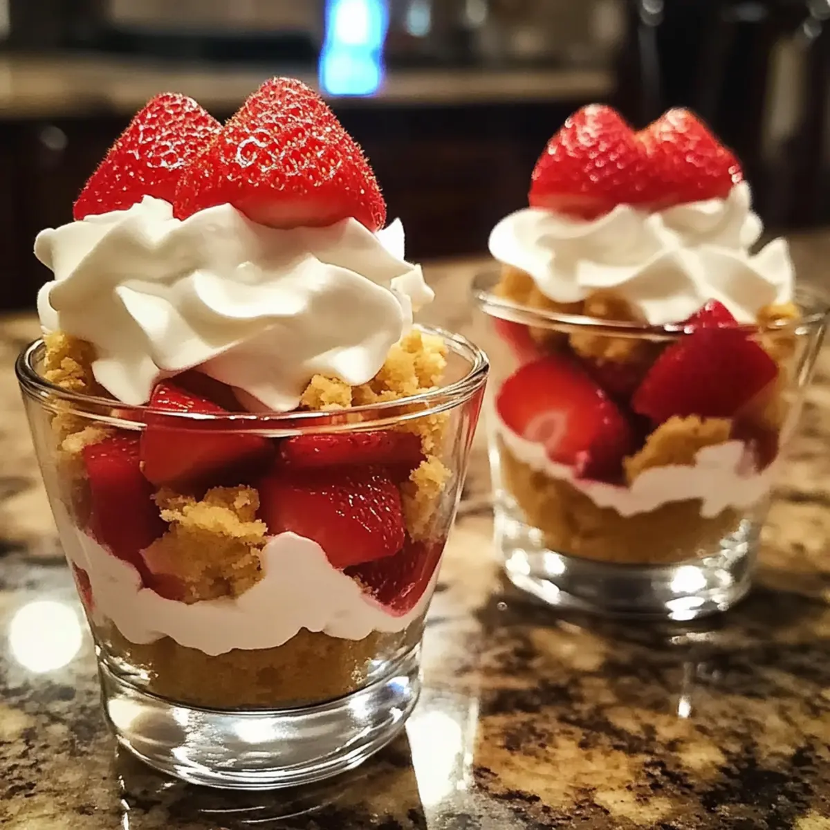 Schritt-für-Schritt-Anleitung für Erdbeerkuchen Parfait Dessertbecher