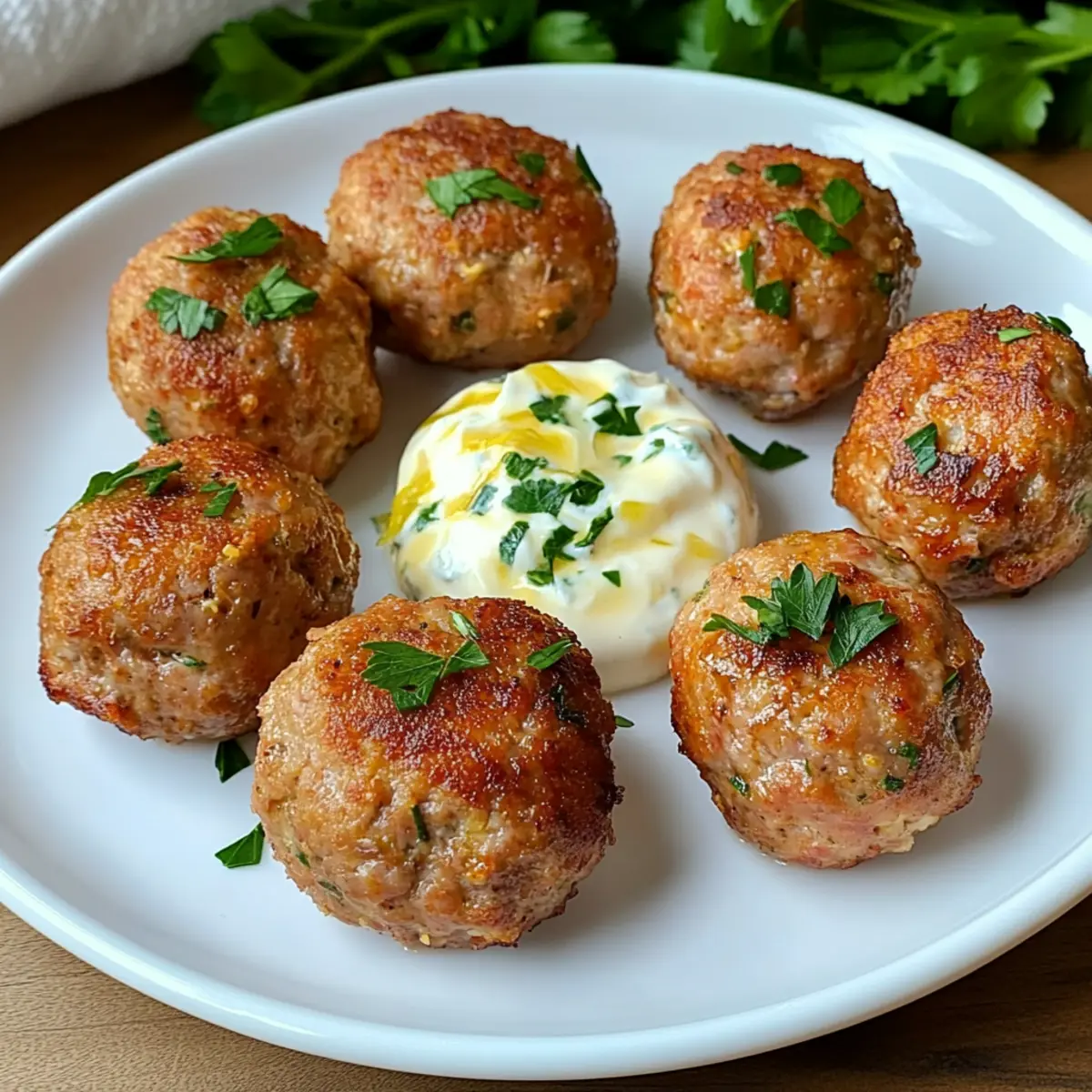 Tzatziki-Dip: Eine zusätzliche Portion Joghurt in Form von Tzatziki verstärkt das Aroma; die erfrischenden Gurken und der Knoblauch passen harmonisch zu den saftigen Bällchen.