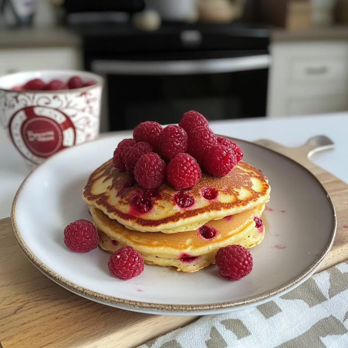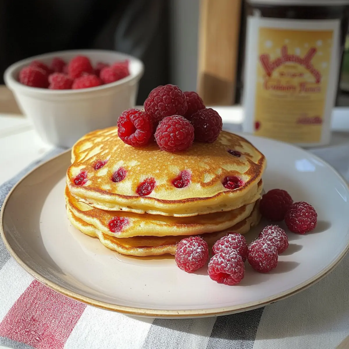 • Vorbereiten Sie sich auf ein köstliches Frühstück mit diesen frischen Himbeerpfannkuchen!