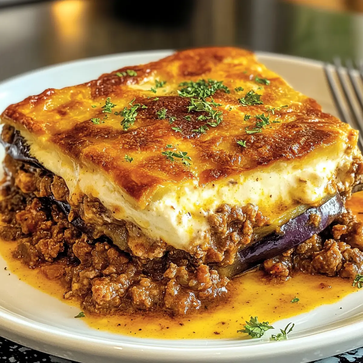 Köstliche Vielseitigkeit: Mit Optionen für Lamm, Rind oder eine vegetarische Variante bietet dieses Gericht für jeden Geschmack etwas. Einfachheit beim Kochen: Die Schritte sind klar und unkompliziert, sodass jeder, vom Anfänger bis zum erfahrenen Koch, diese Moussaka meistern kann. Reiche Aromen: Eine harmonische Mischung aus Gewürzen und Kräutern verwandelt einfache Zutaten in ein geschmackliches Erlebnis, das zum Schlemmen einlädt. Perfekte Textur: Die Kombination aus zarten Auberginen und cremiger Béchamel sorgt für eine unwiderstehliche Mundfülle. Geselliges Essen: Ideal für Familienfeste oder ein gemütliches Abendessen mit Freunden, dieses Rezept wird garantiert für Begeisterung sorgen. Holen Sie sich auch Tipps für eine perfekte Beilage mit einem frischen Griechischen Salat und knusprigem Brot!