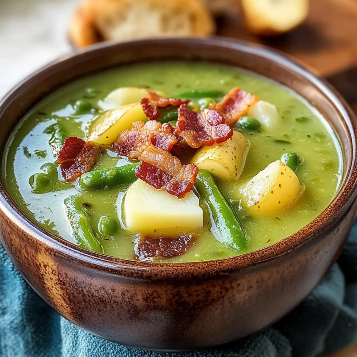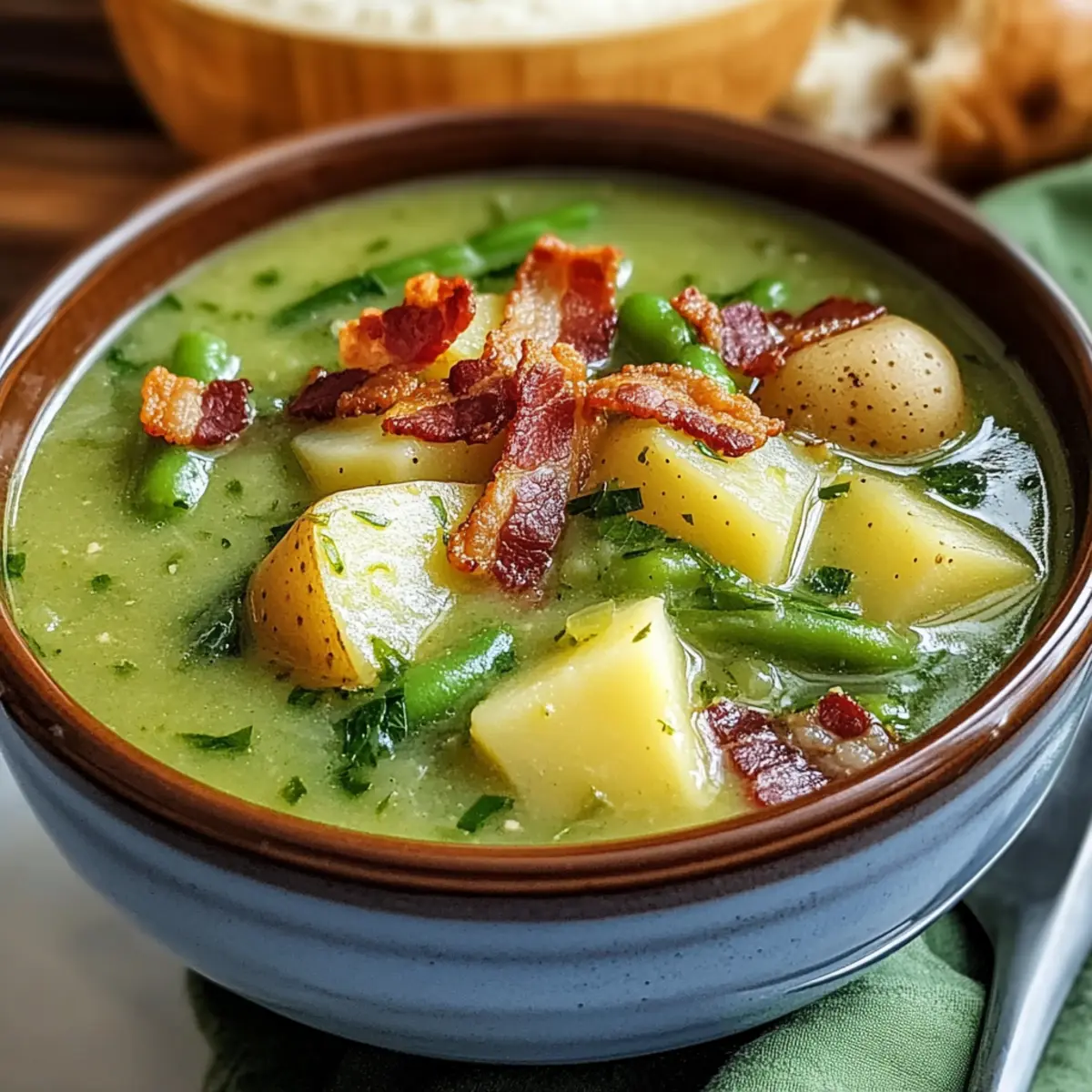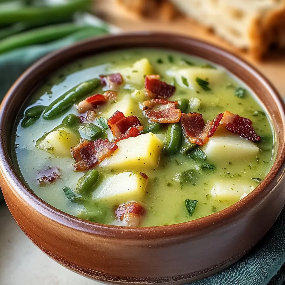 Grüne-Bohnen-Suppe mit knusprigem Bacon