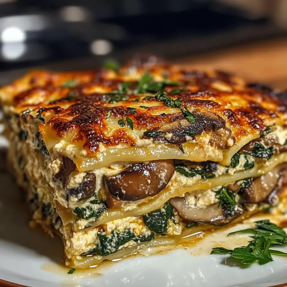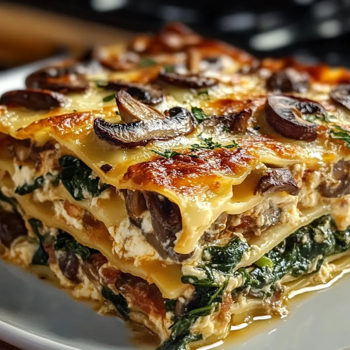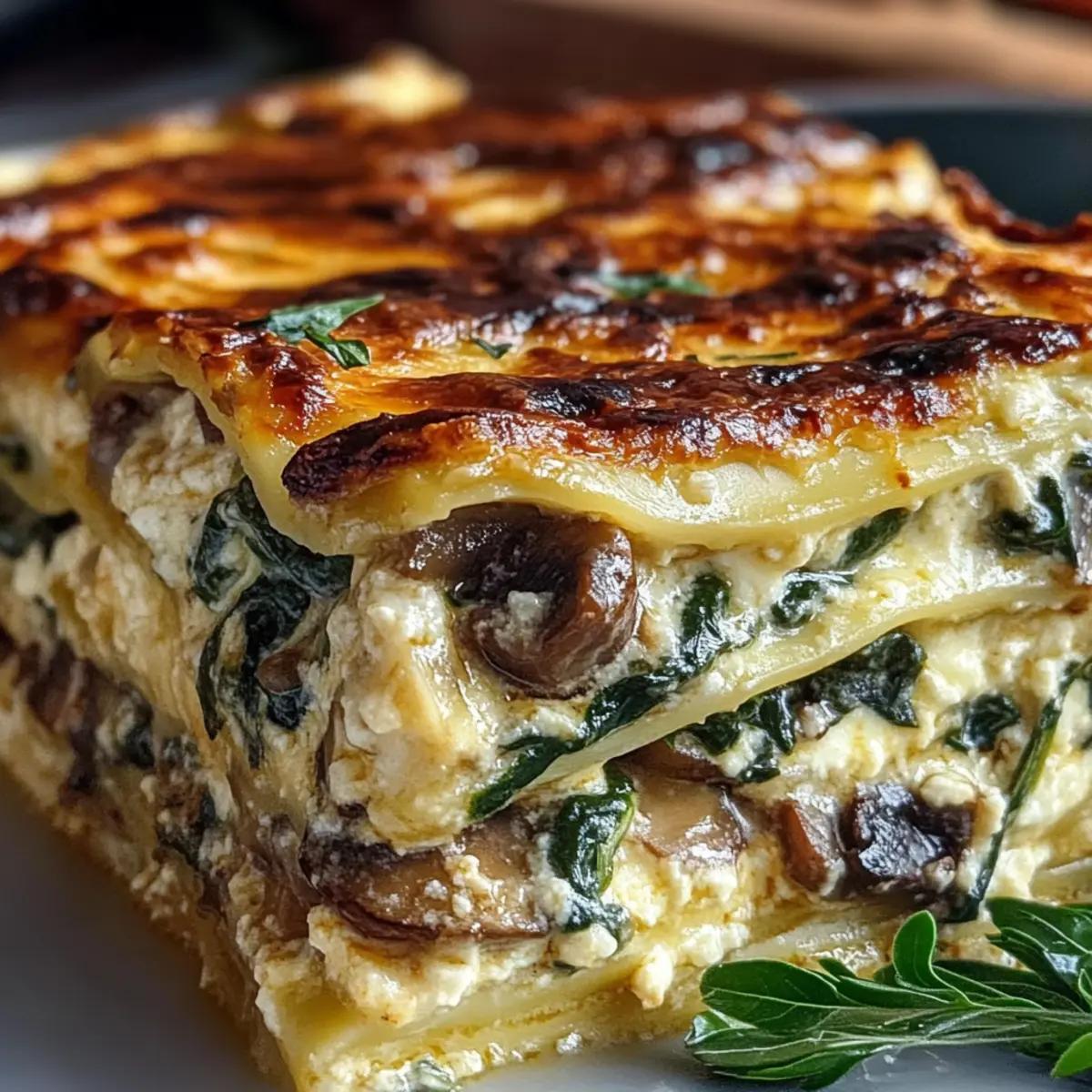 Hüttenkäse-Lasagne-Auflauf mit Pilzen und Spinat