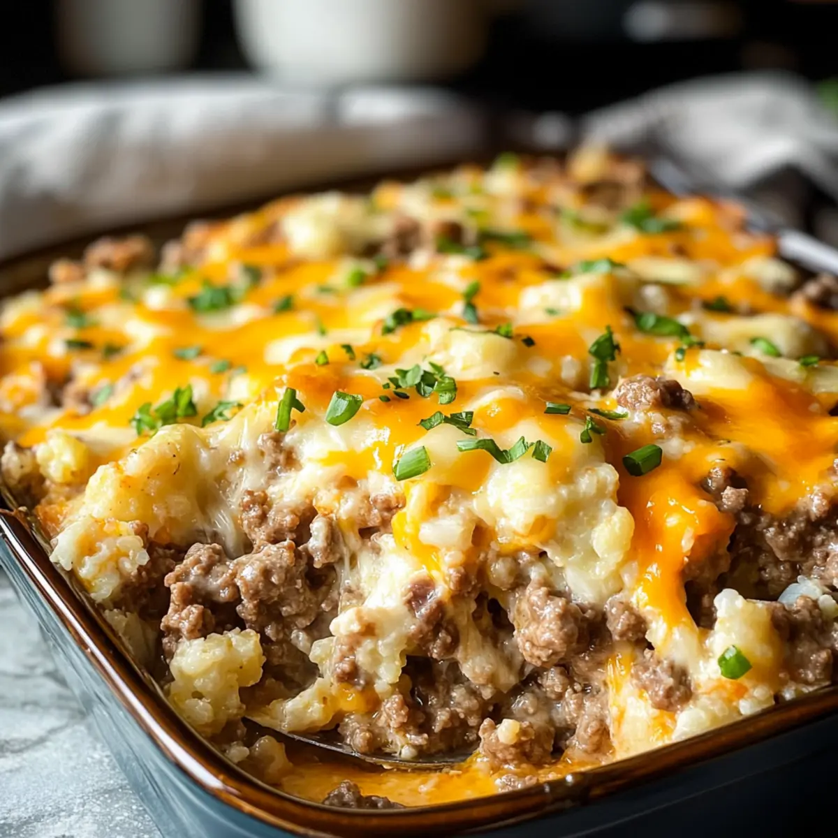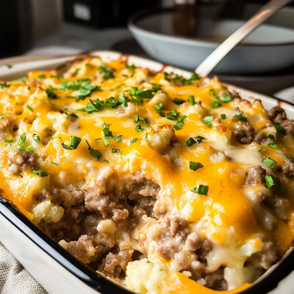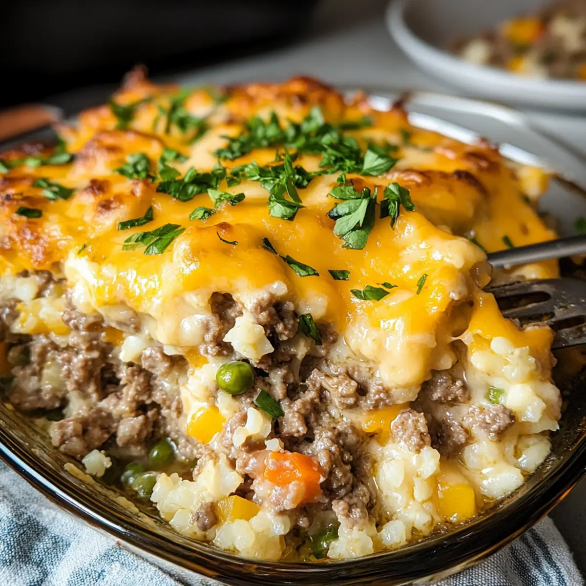 Käse-Hackfleisch- und Blumenkohlreis-Auflauf veganisiert