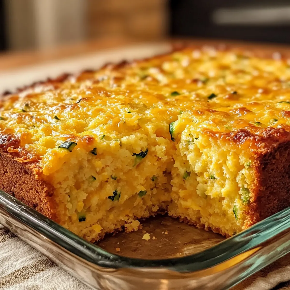 Erlebe den Unterschied und verwandle frische Zucchini in ein köstliches Erlebnis mit diesem Rezept für Käse Zucchini Maisbrot Auflauf.