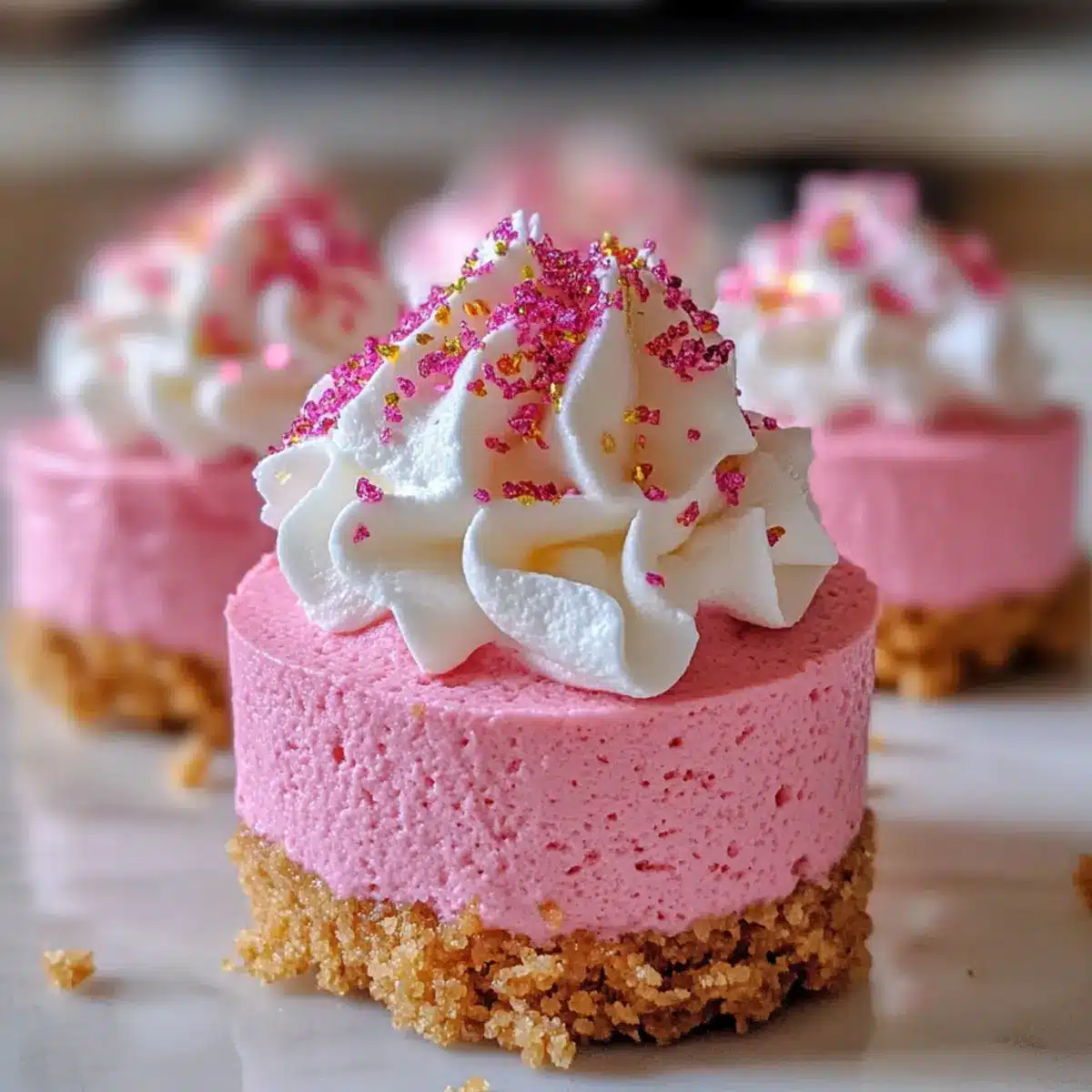 Die No-Bake Pink Velvet Cheesecake Bites sind die perfekte Wahl für vielbeschäftigte Köche, die wertvolle Zeit sparen möchten! Du kannst den Graham-Cracker-Boden bis zu 3 Tage im Voraus zubereiten und in den Kühlschrank stellen, um die Frische zu bewahren. Auch die Füllung kannst du bereits 24 Stunden vorher mischen und in einem luftdichten Behälter im Kühlschrank aufbewahren. Achte darauf, die Füllung vor dem Befüllen der Förmchen noch einmal aufzuschlagen, um die Luftigkeit zu erhalten. Wenn du bereit bist, die Häppchen zu servieren, fülle einfach die Krustenschalen mit der Füllung, lass sie für mindestens 4 Stunden kühlen und genieße die perfekten, cremigen Leckerbissen—einfache und schmackhafte Vorbereitungen für stressfreie Genussmomente!