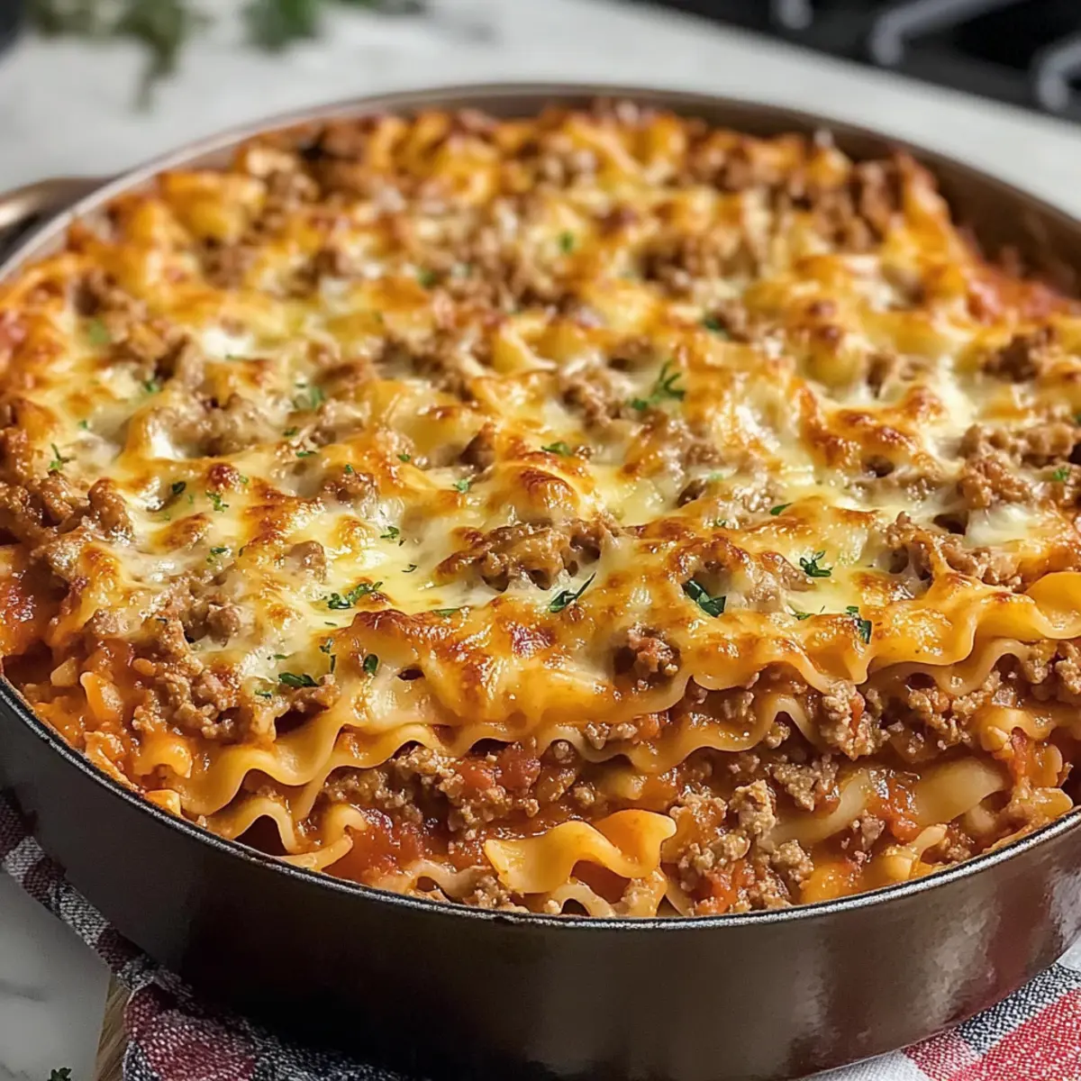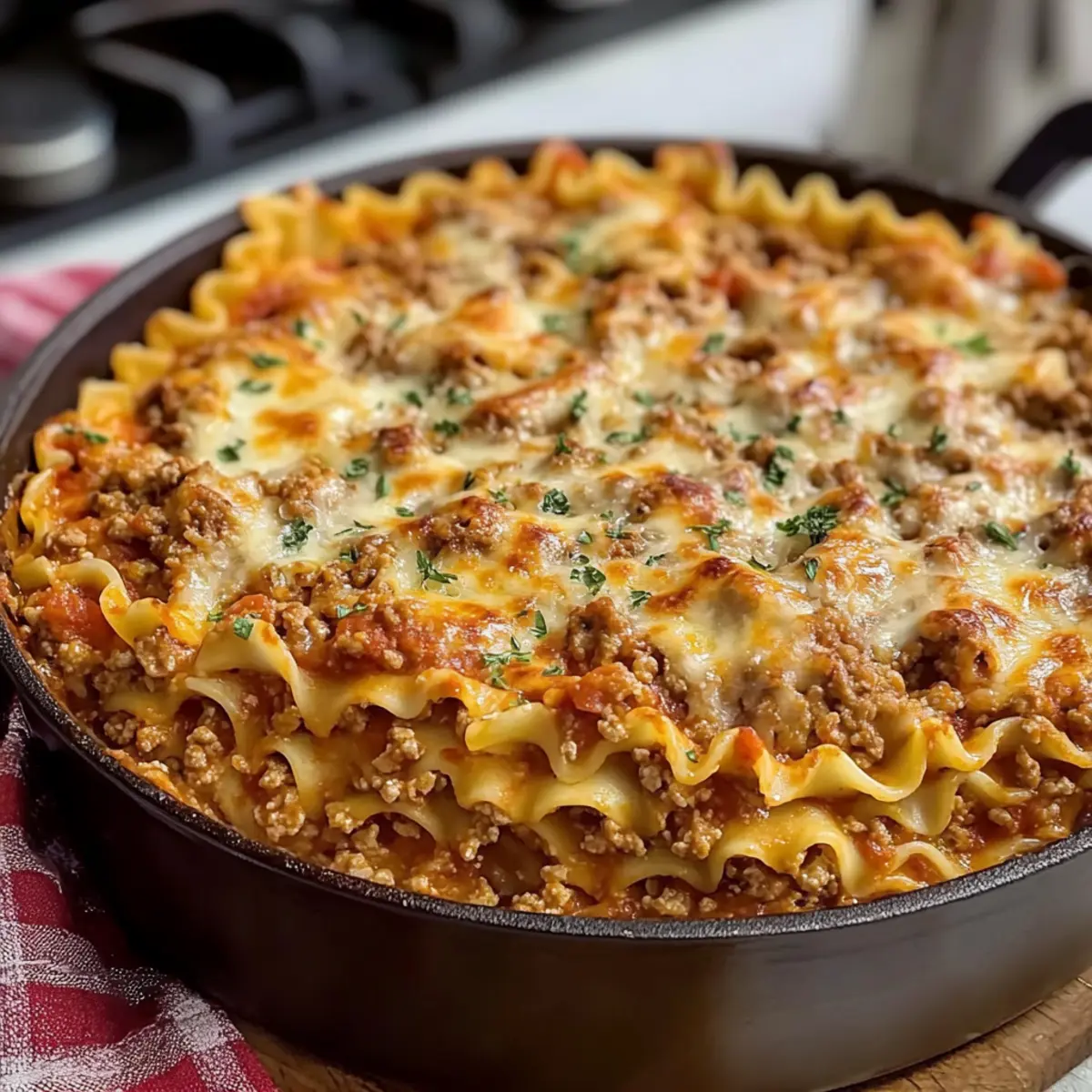 Flüssigkeit anpassen: Sollte die Mischung zu dick werden, füge einfach einen Schuss Rinderbrühe hinzu. So bleibt die Lasagne schön saftig.