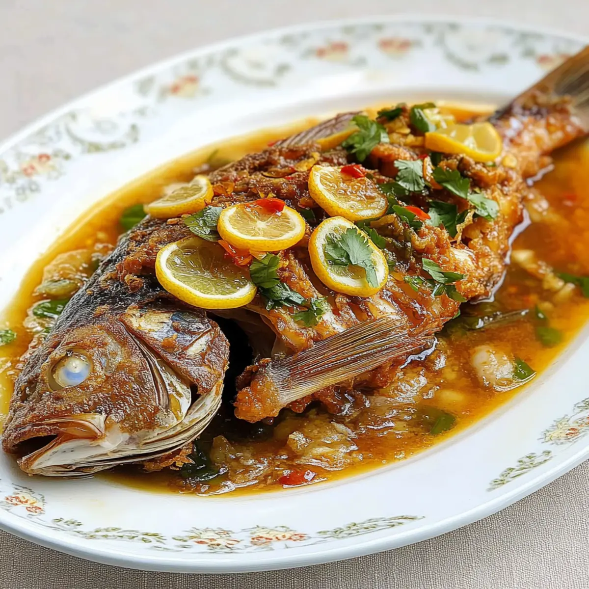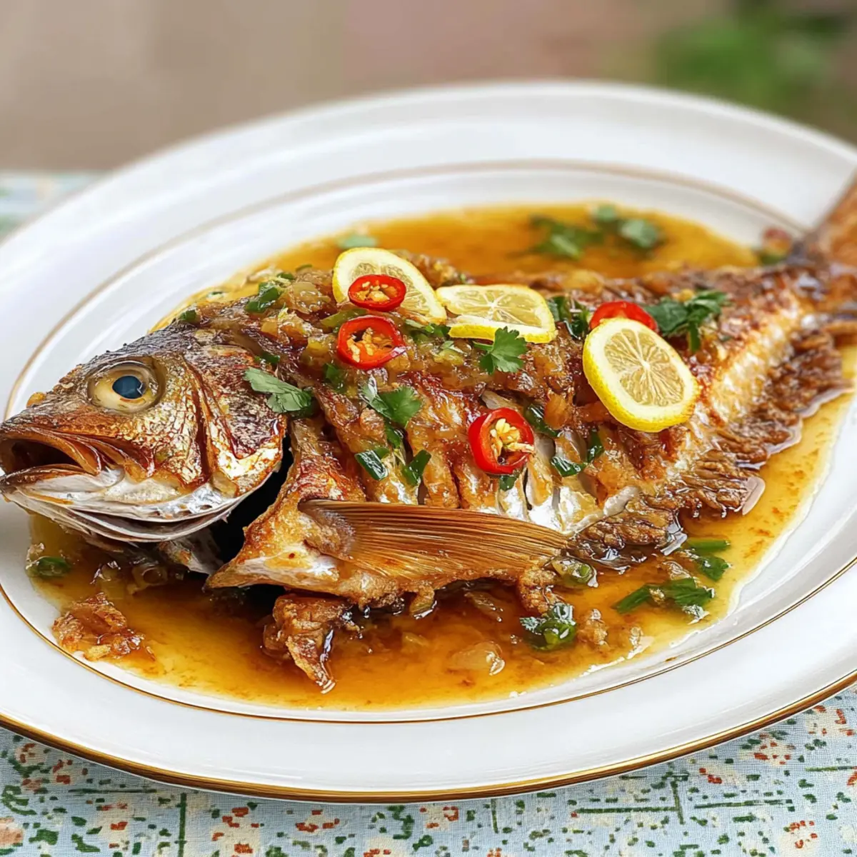 Knusprig gebratener ganzer Fisch mit Zitronensauce