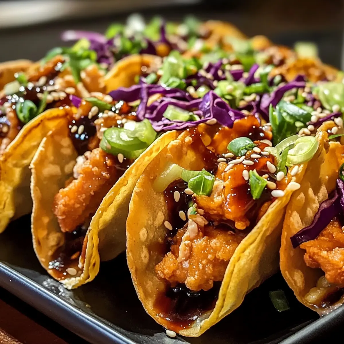 Knusprige Hähnchen-Wonton-Tacos mit Teriyaki-Glasur