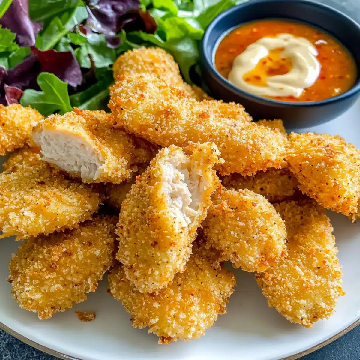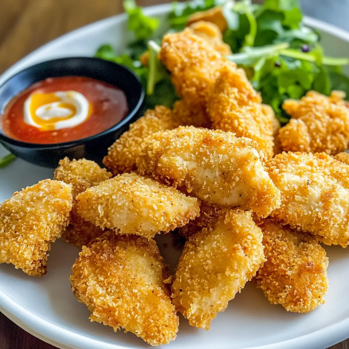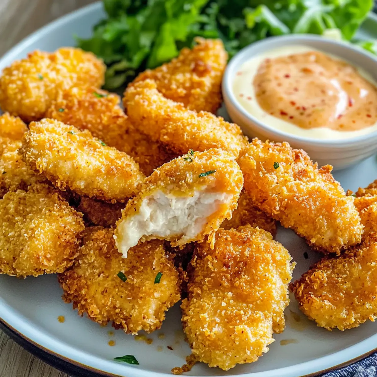 Knusprige, gleichmäßig gebackene Nuggets werden deine Geschmacksknospen verzaubern! Ihre super saftige Textur sorgt dafür, dass du garantiert nicht aufhören kannst, sie zu essen. Einfache Zubereitung: In wenigen Schritten zauberst du diese köstlichen Leckerbissen zuhause und sparst dir die Ausgaben für Fast Food. Vielseitige Dips: Kombiniere sie mit verschiedenen Dips, wie einer leichten Joghurtsoße oder süßem Chili, um den perfekten Snack für jede Gelegenheit zu kreieren. Und wenn du etwas Abwechslung suchst, probiere unsere Knusprige Heissluftfritteuse Haehnchen oder die Buttermilch Ofen Geroestetes für zusätzliche Inspiration!