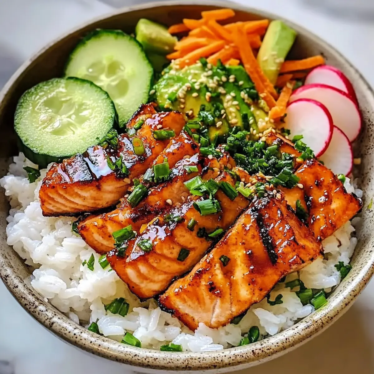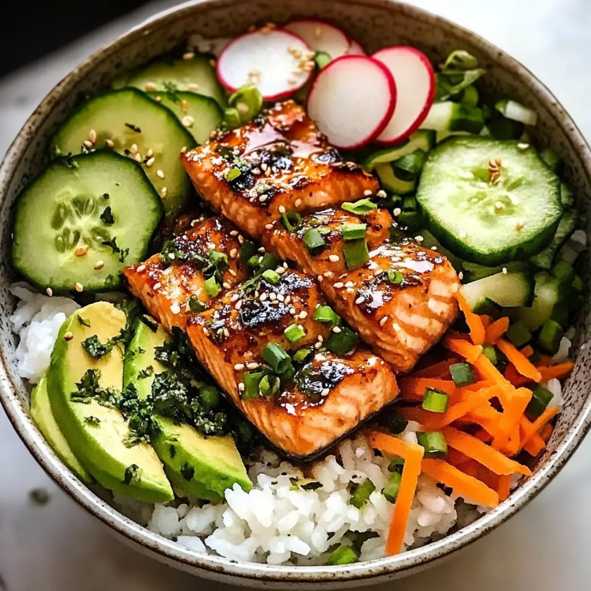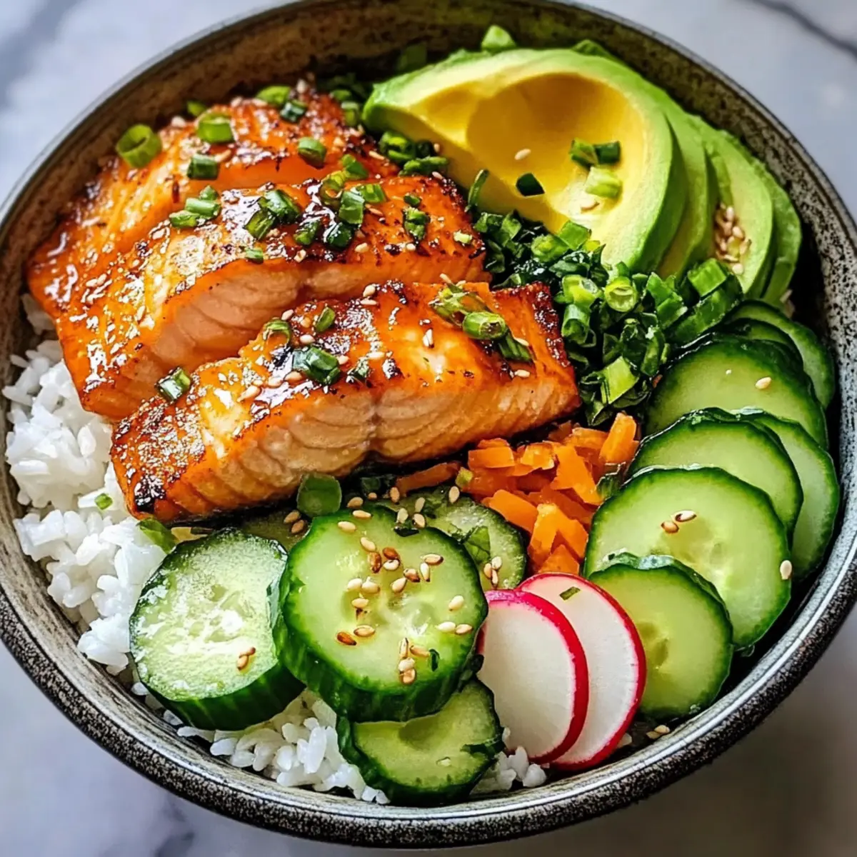 - Vegetarisch: Ersetze den Lachs durch knusprigen Tofu. Einfach marinieren und braten für einen tollen Texturkontrast.