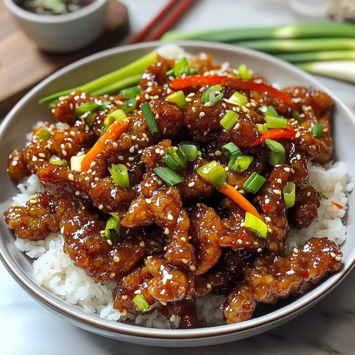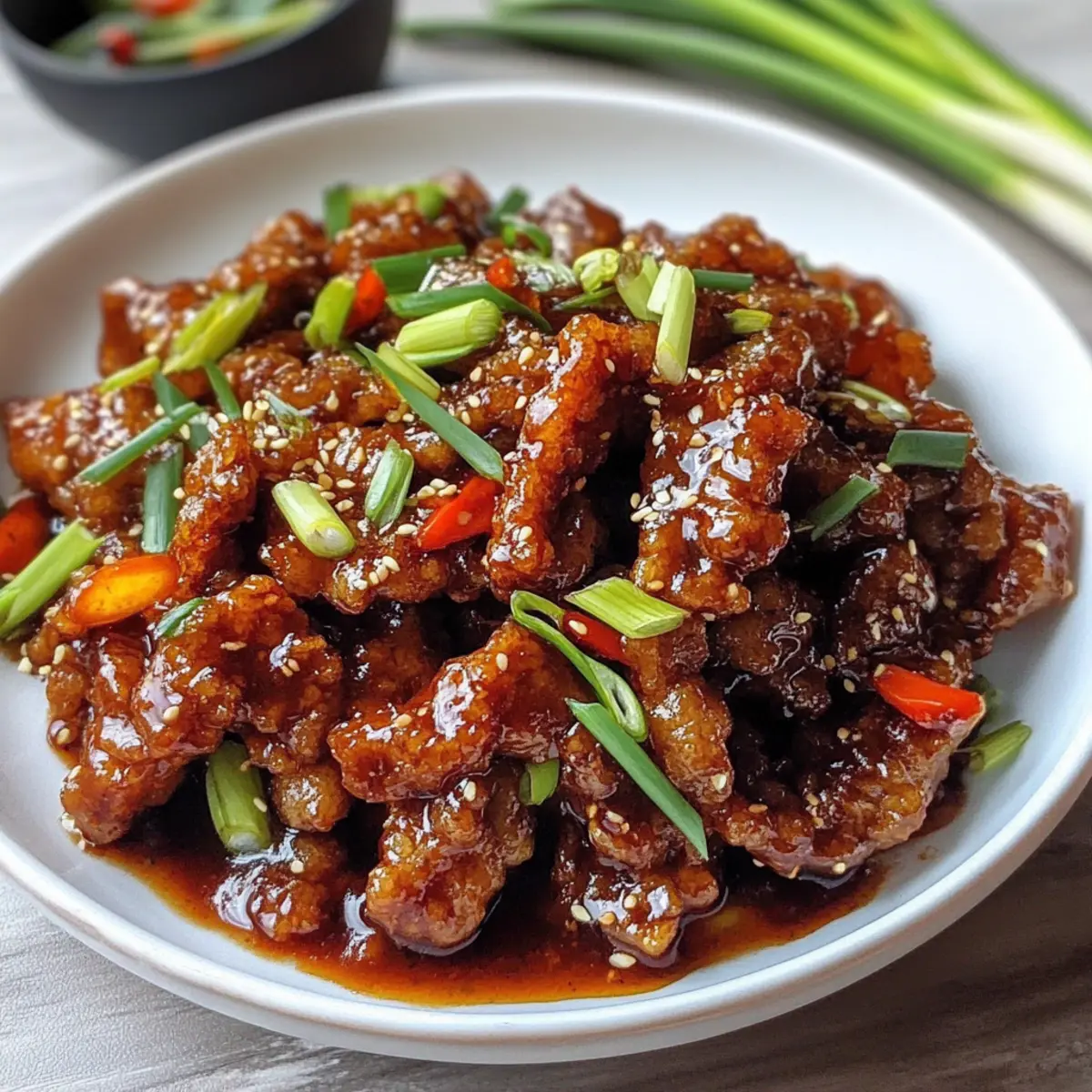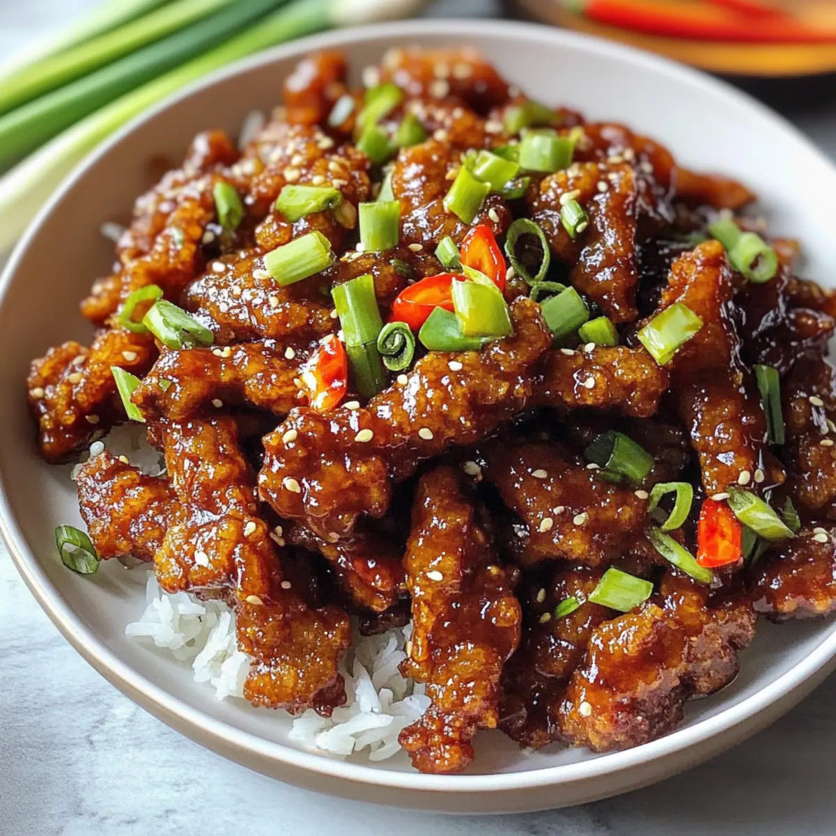 Absolut! Ersetze das Rindfleisch durch Tofu oder Tempeh, um eine vegetarische Variante zu kreieren. Diese Zutaten nehmen die Aromen der Marinade wunderbar auf und können ebenfalls knusprig frittiert werden. Füge zusätzlich Gemüse wie Brokkoli oder Zuckerschoten hinzu, um Farbe und Nährstoffe zu integrieren.