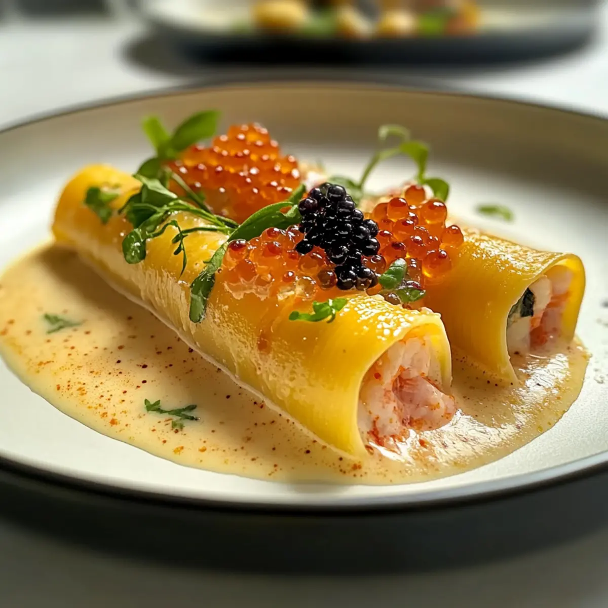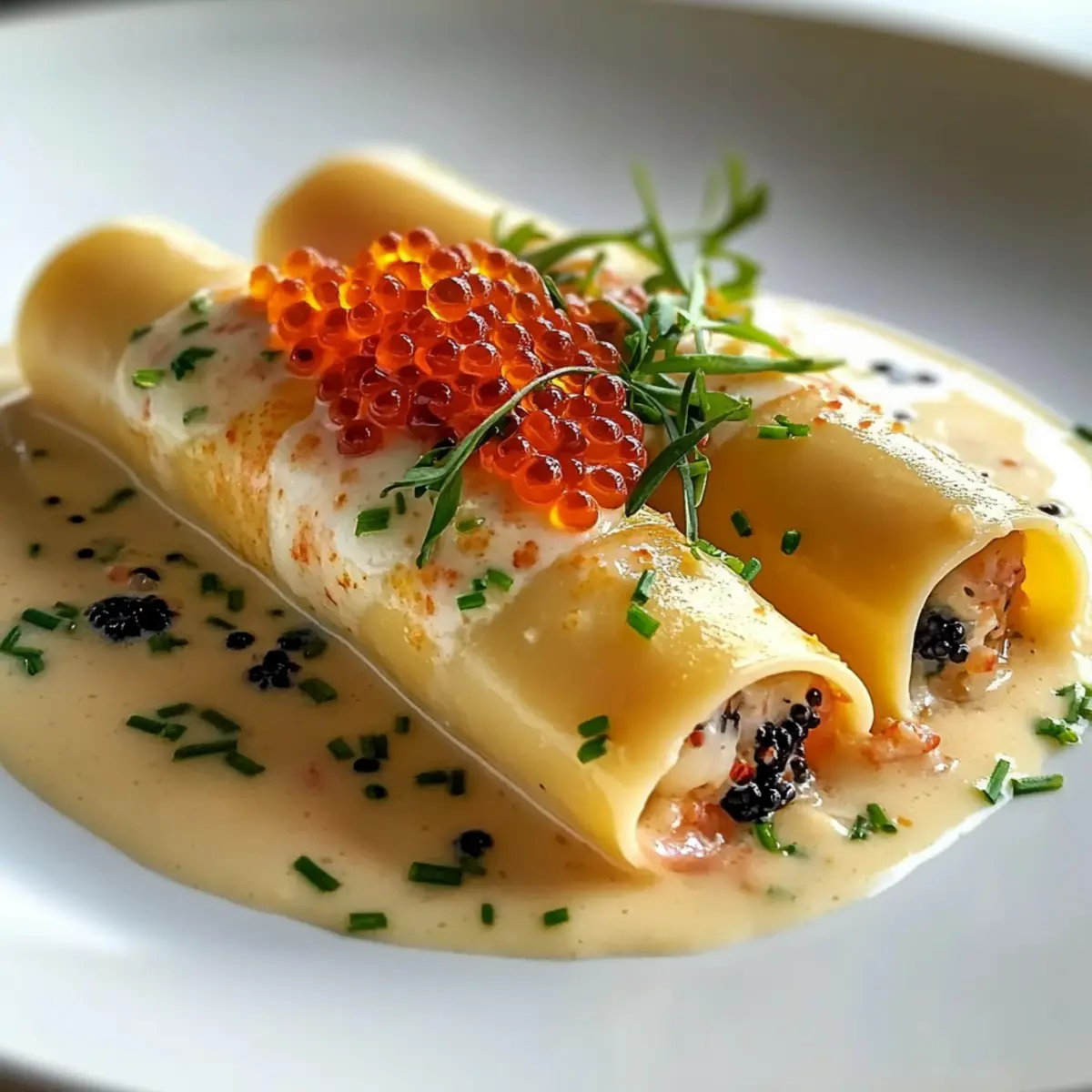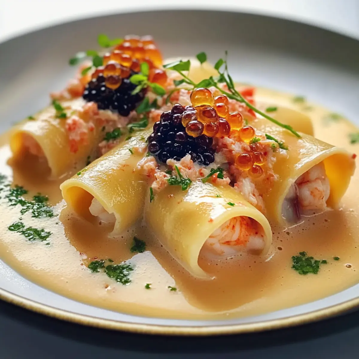 Langoustine-Cannelloni mit Hummer-Bisque-Sauce