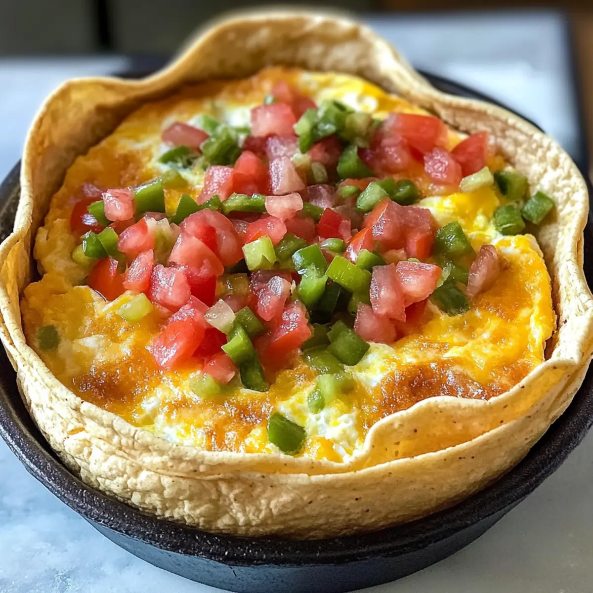 - Eiermischung in jede Tortilla-Basis gießen, bis fast zum Rand gefüllt.