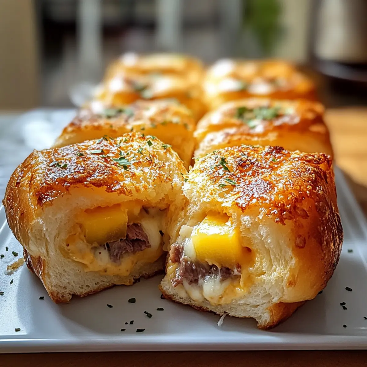 Absolut! Du kannst die Brötchen bis zu 2 Monate im Gefrierschrank lagern. Wickele sie gut in Frischhaltefolie oder Aluminiumfolie ein, um Gefrierbrand zu vermeiden. Zum Aufwärmen lege sie bei 180°C (350°F) für etwa 10 Minuten in den Ofen, bis sie knusprig und der Käse geschmolzen ist.