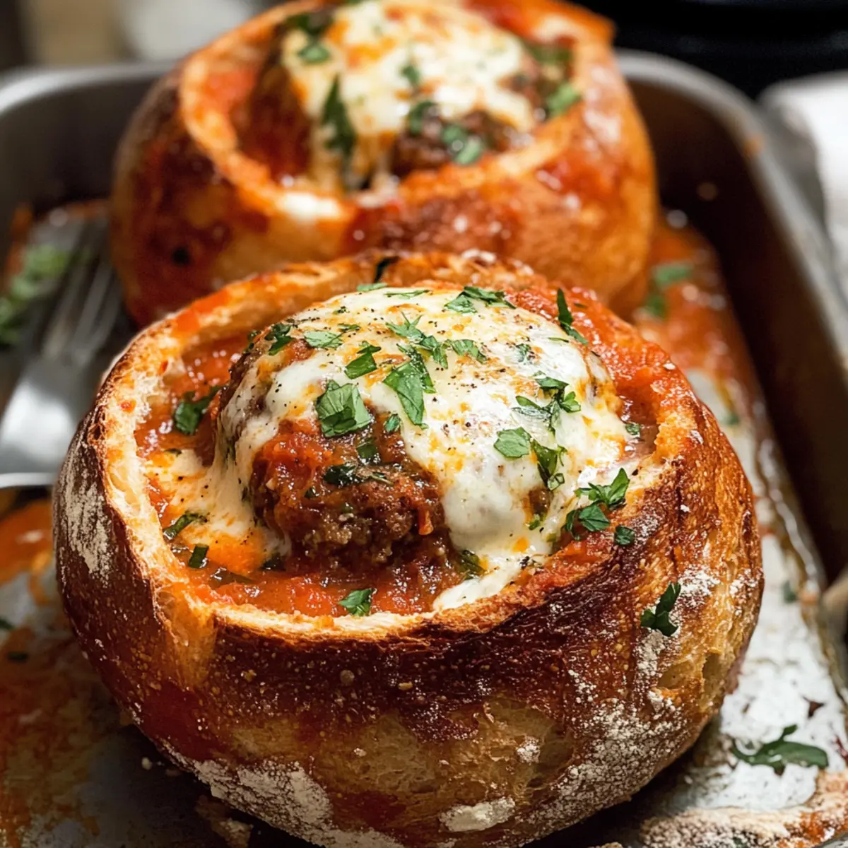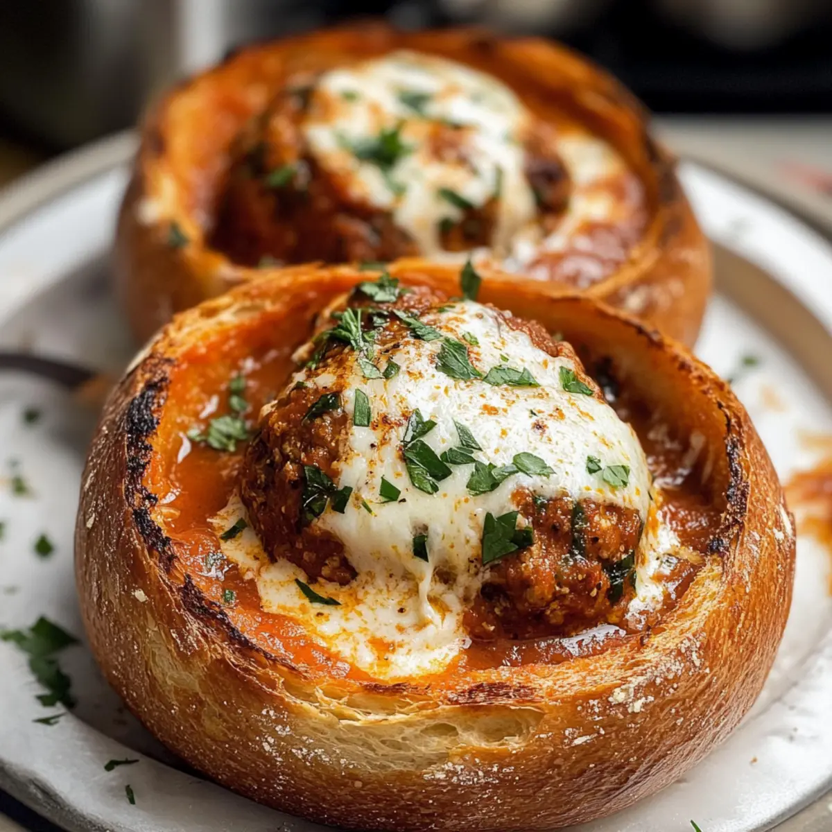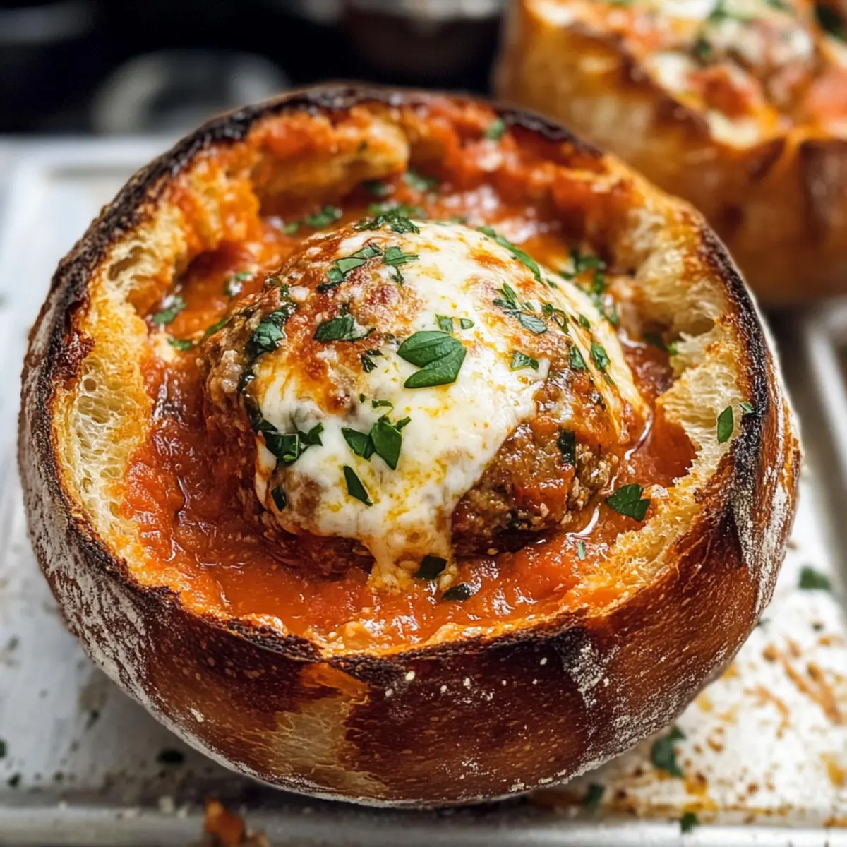 Parmesan Fleischbällchen Suppe im Brot-Bowl