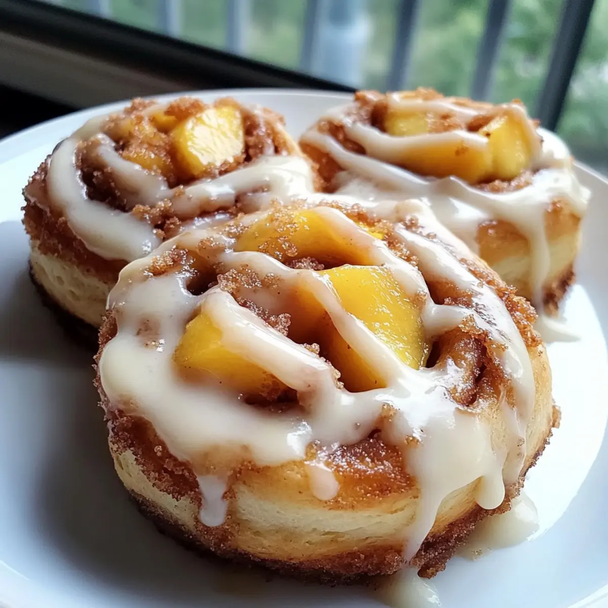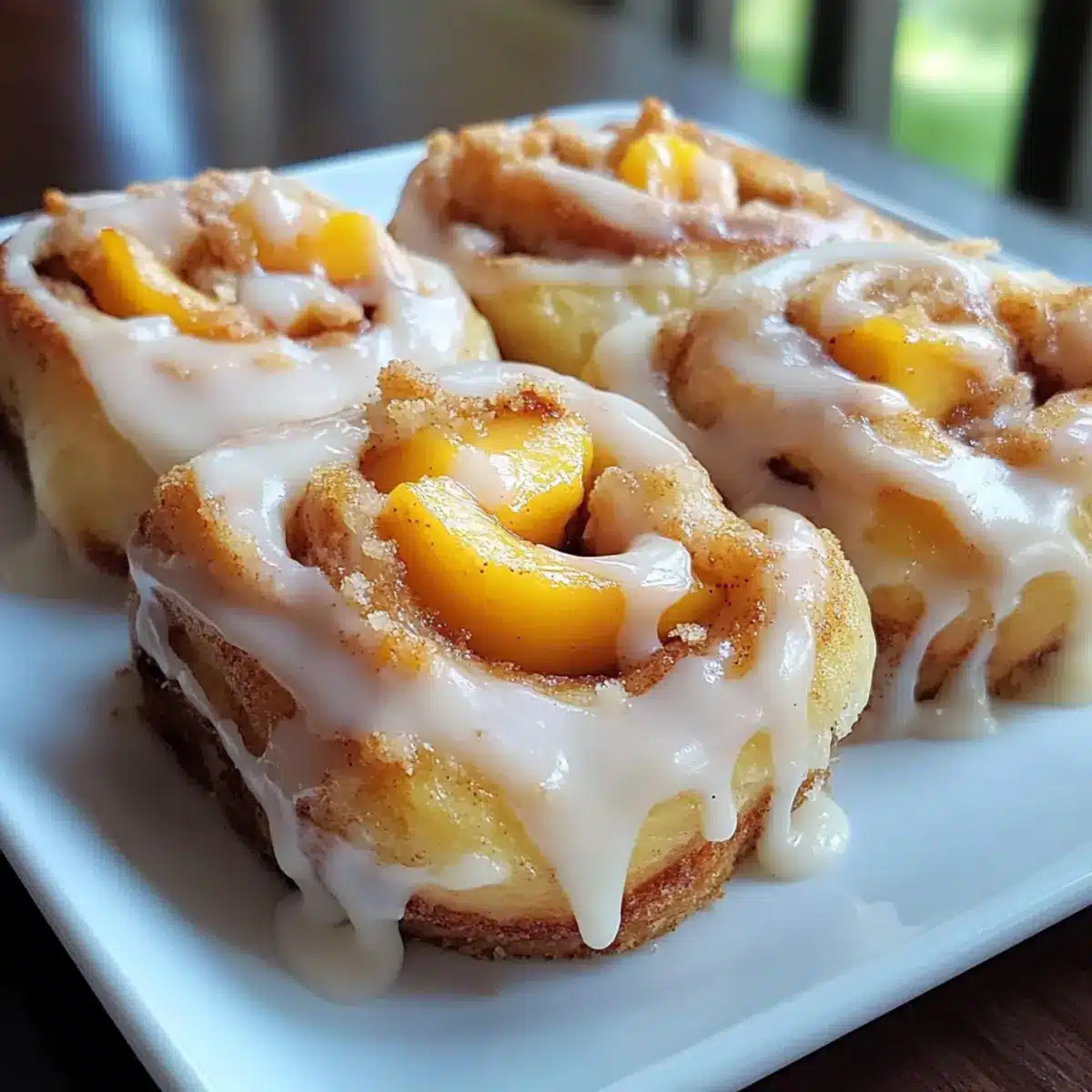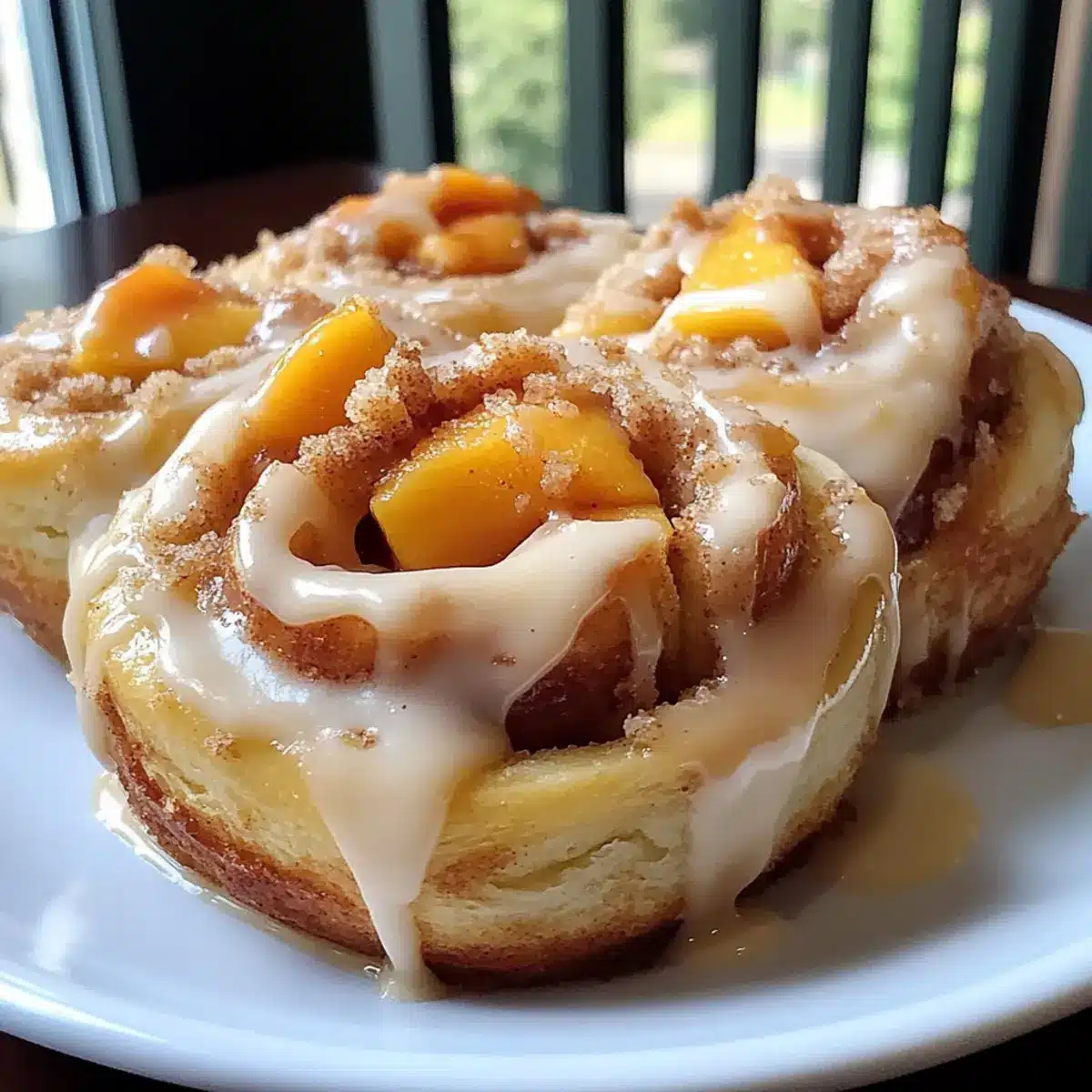 Pfirsich-Streusel-Cinnamon-Rolls für ein süßes Frühstück