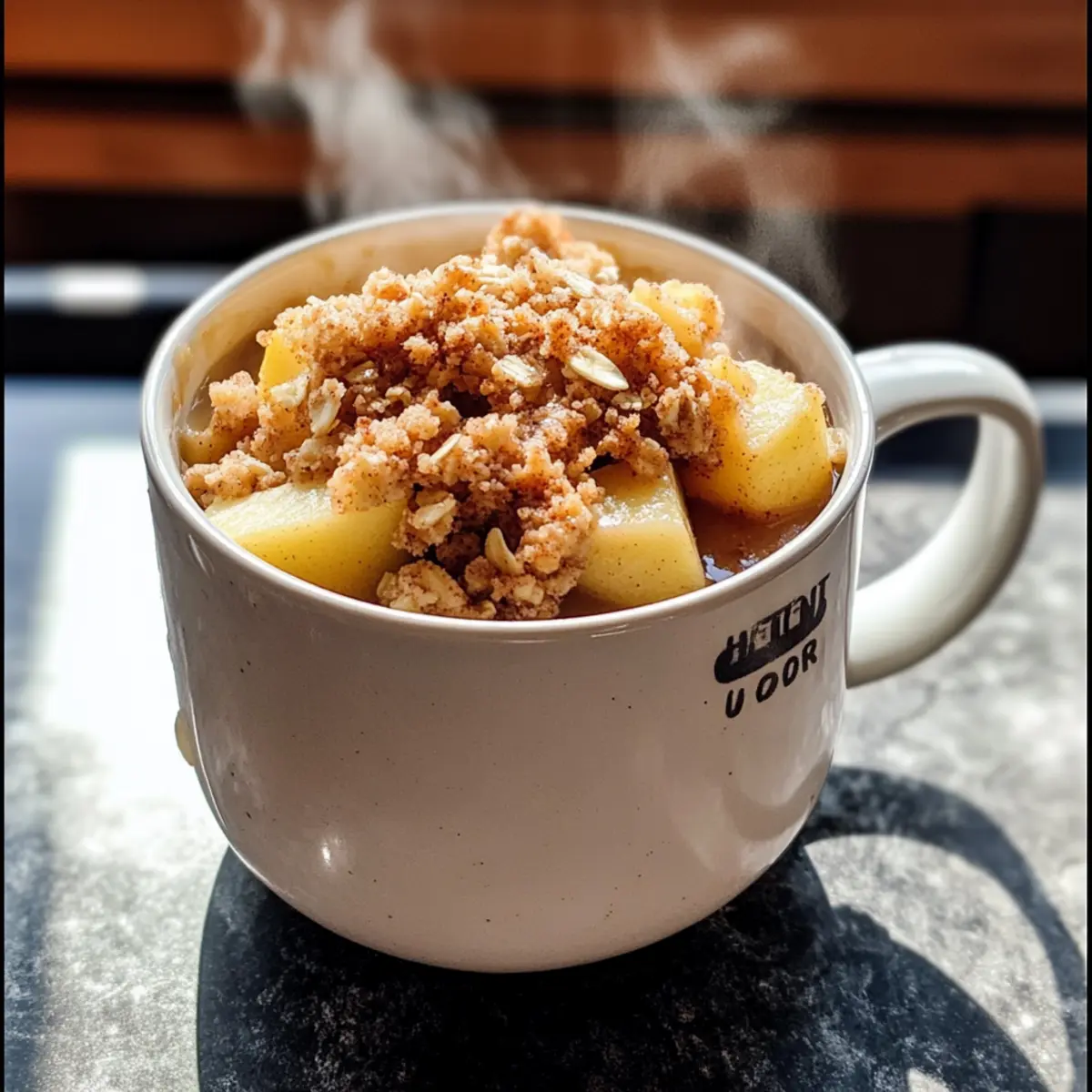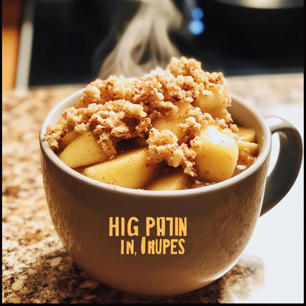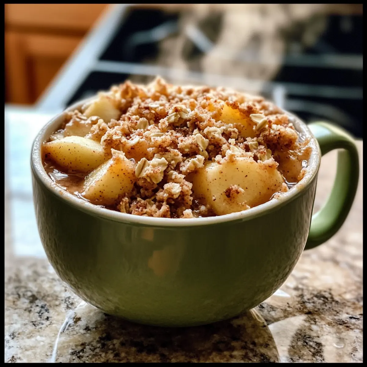 - Lass den Protein Apfel-Crisp aus der Tasse für eine Minute ruhen, bevor du ihn servierst.