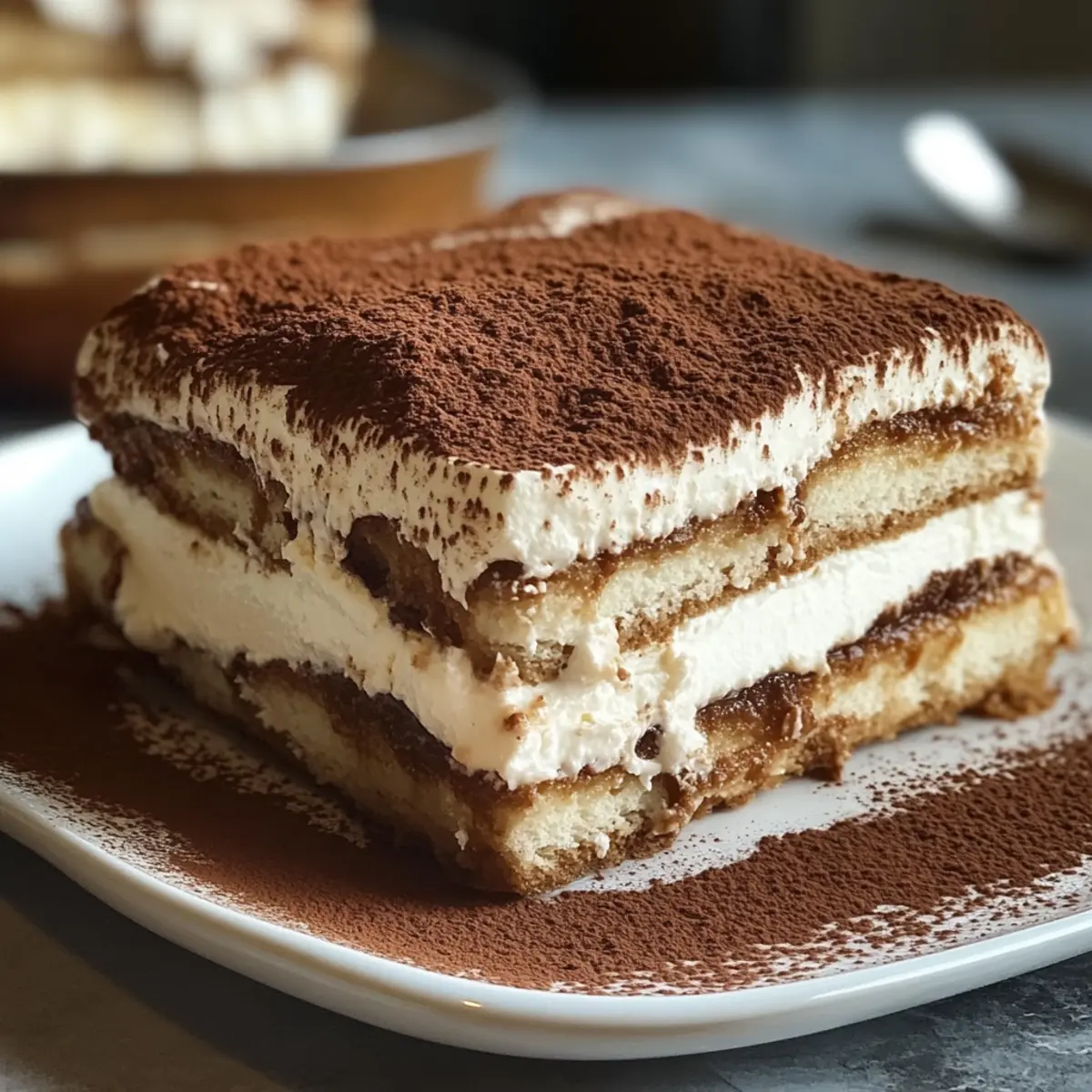 Elegante Präsentation: Staube die Oberseite des Tiramisu kurz vor dem Servieren mit ungesüßtem Kakaopulver, um eine ansprechende Optik und zusätzlichen Geschmack zu erreichen.