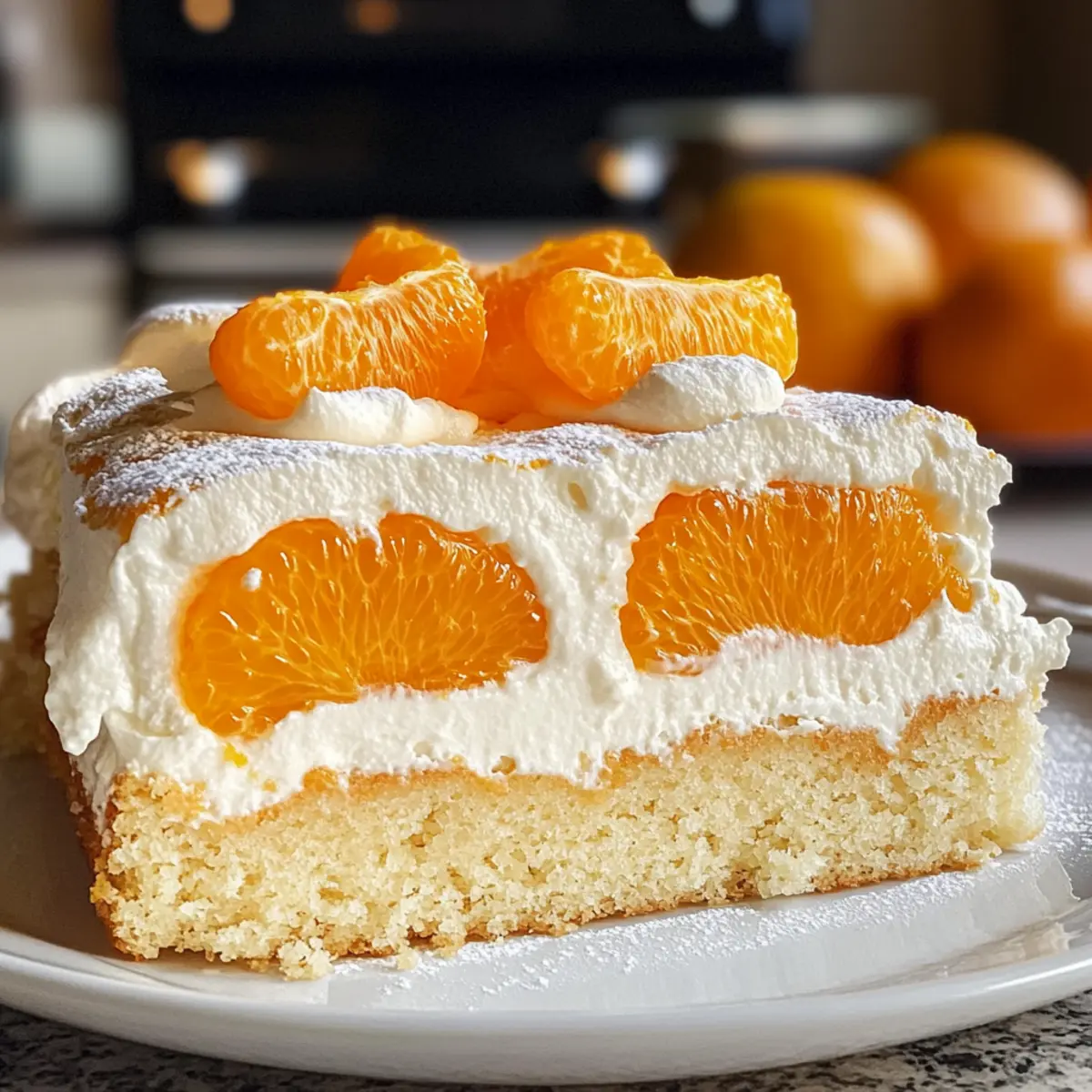Schmandkuchen vom Blech mit Mandarinen genießen