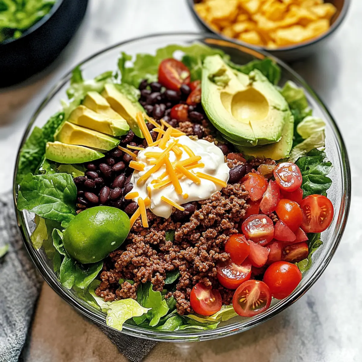 Lass deiner Kreativität freien Lauf und passe diesen köstlichen Taco-Salat nach deinem Geschmack an – du wirst überrascht sein, wie vielseitig er ist!