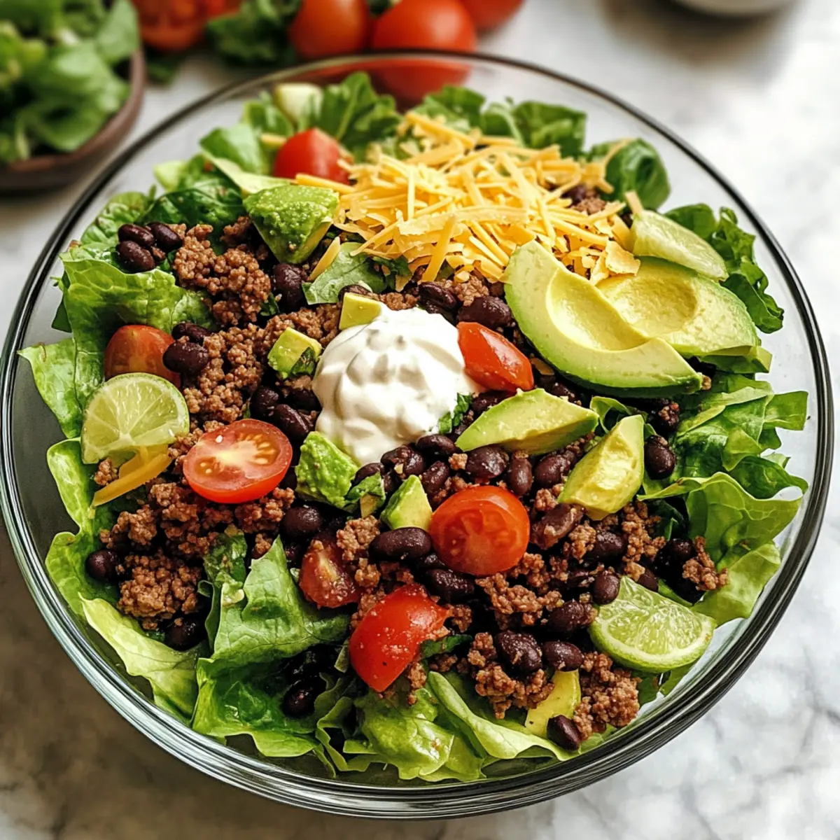 Dieser Taco-Salat ist nicht nur nahrhaft, sondern auch eine aufregende Möglichkeit, deine Lieblingszutaten zu kombinieren!
