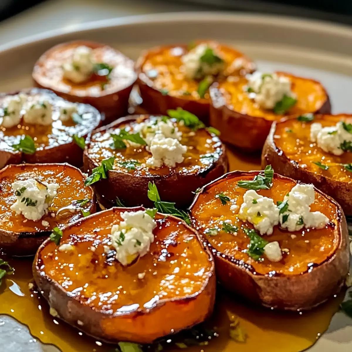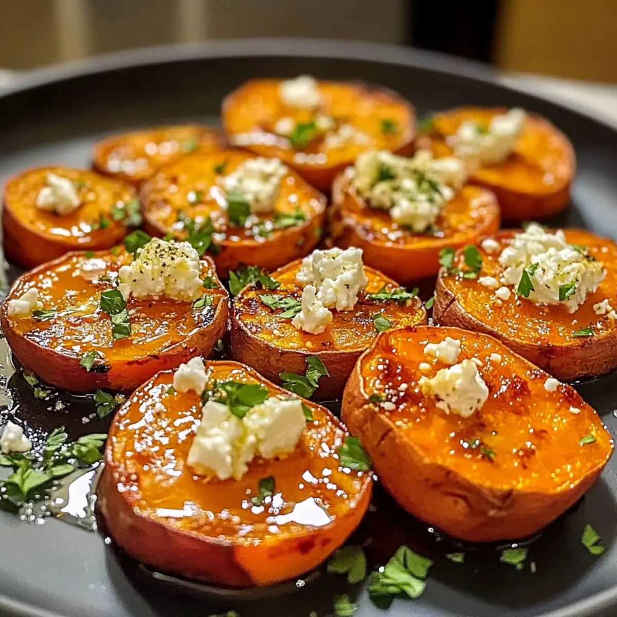 Unwiderstehliche geröstete Süßkartoffelrunden mit Feta