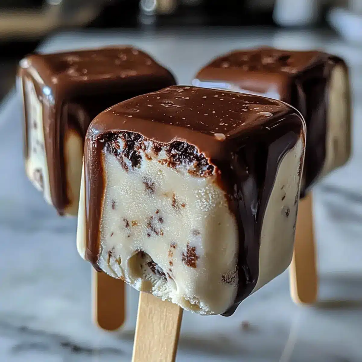 Stelle sicher, dass die Schokoladenschicht abgekühlt ist, bevor du sie über die gefrorenen Pops gießt. Außerdem ist es hilfreich, die Pops kurz in warmes Wasser zu tauchen, um sie leichter zu lösen, sodass sie beim Überziehen stabil bleiben.