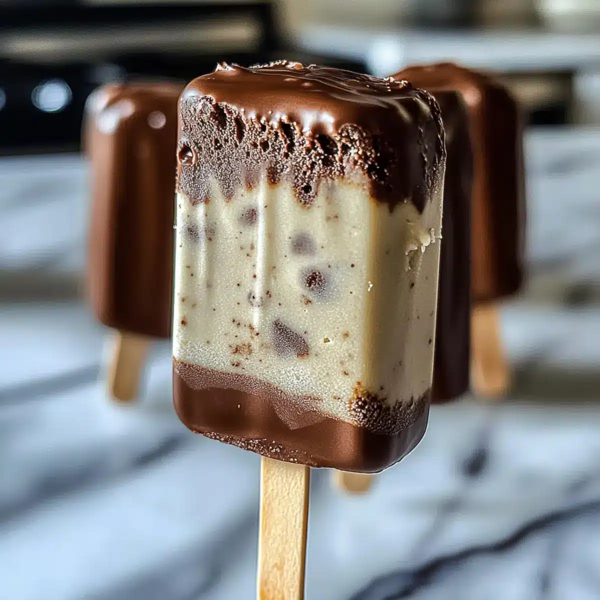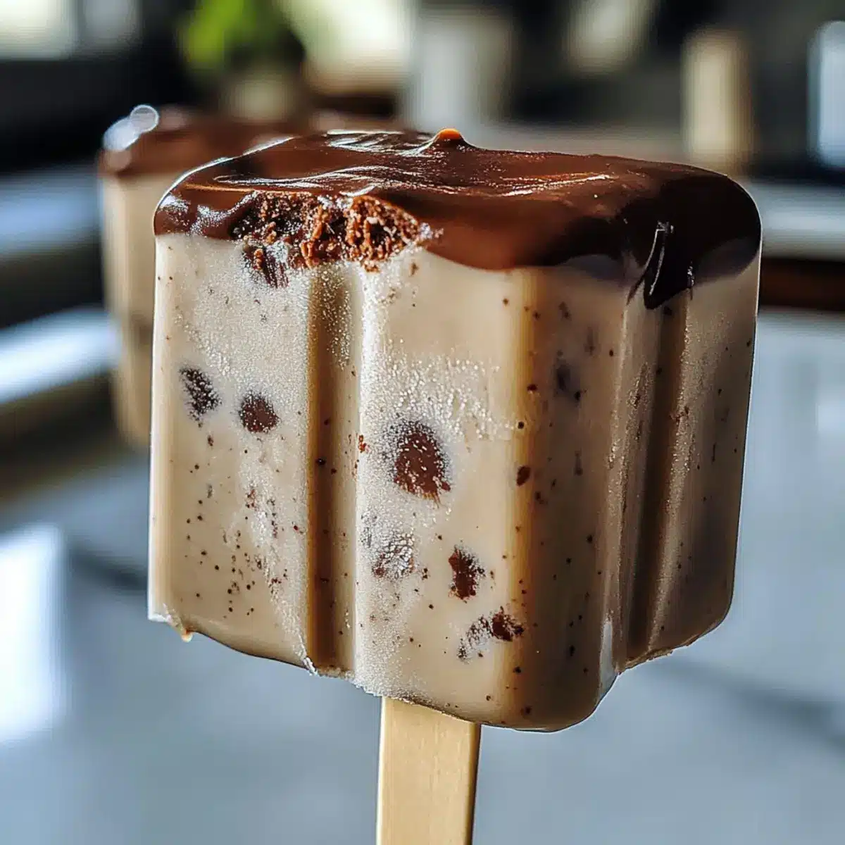 - Für den perfekten Crunch: Streue vor dem Einfrieren gehackte Nüsse oder Schokostücke über die Schokoladenschicht – das gibt zusätzlichen Texturgenuss.